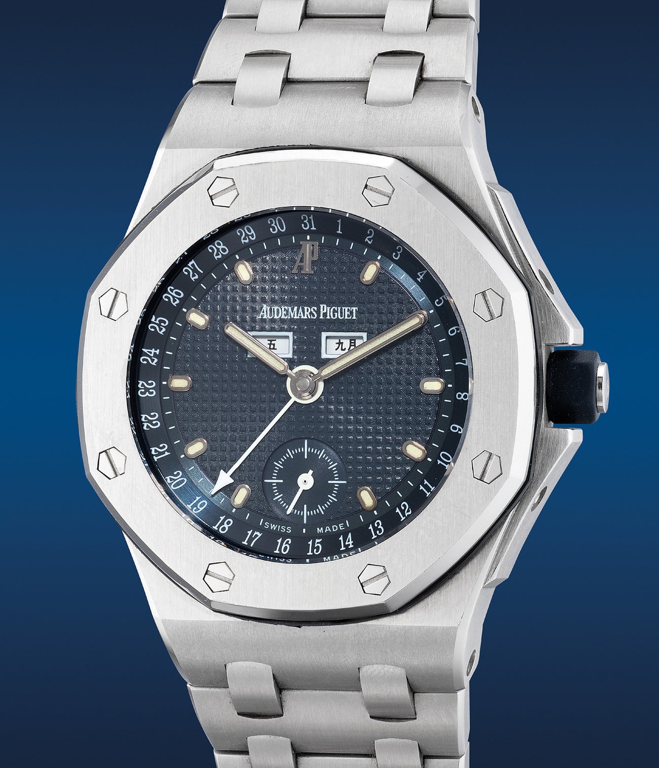 Consigned by the same collector as the pink gold edition (see previous lot), the present stainless steel example is also numbered 18. For collectors who are looking for something special but not too flashy to celebrate the 50th anniversary of the Royal Oak as well as the 25th anniversary of the handover, this is the one to acquire or for collectors who is keen for the perfect pair, now is the chance to get both with the same limited edition number 18.