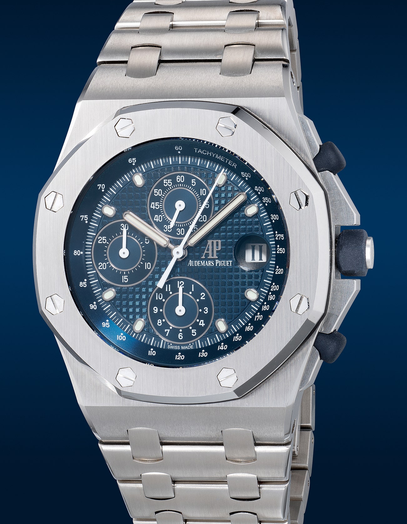 - In honour of the game-changing ref. 25721ST, the manufacturer released a modern reissue counterpart 25 years later in 2018. The new and improved ref. 26237ST.OO.1000ST.01 is a modern machine built with today’s technology, allowing aficionados to enjoy and experience the original design without the shortcomings of the original. From the applied “AP” logo and tachymeter track, to the positions of the subdials with silver rings, each feature on the dial is virtually identical to the rich blue petite tapisserie dial on its predecessor.