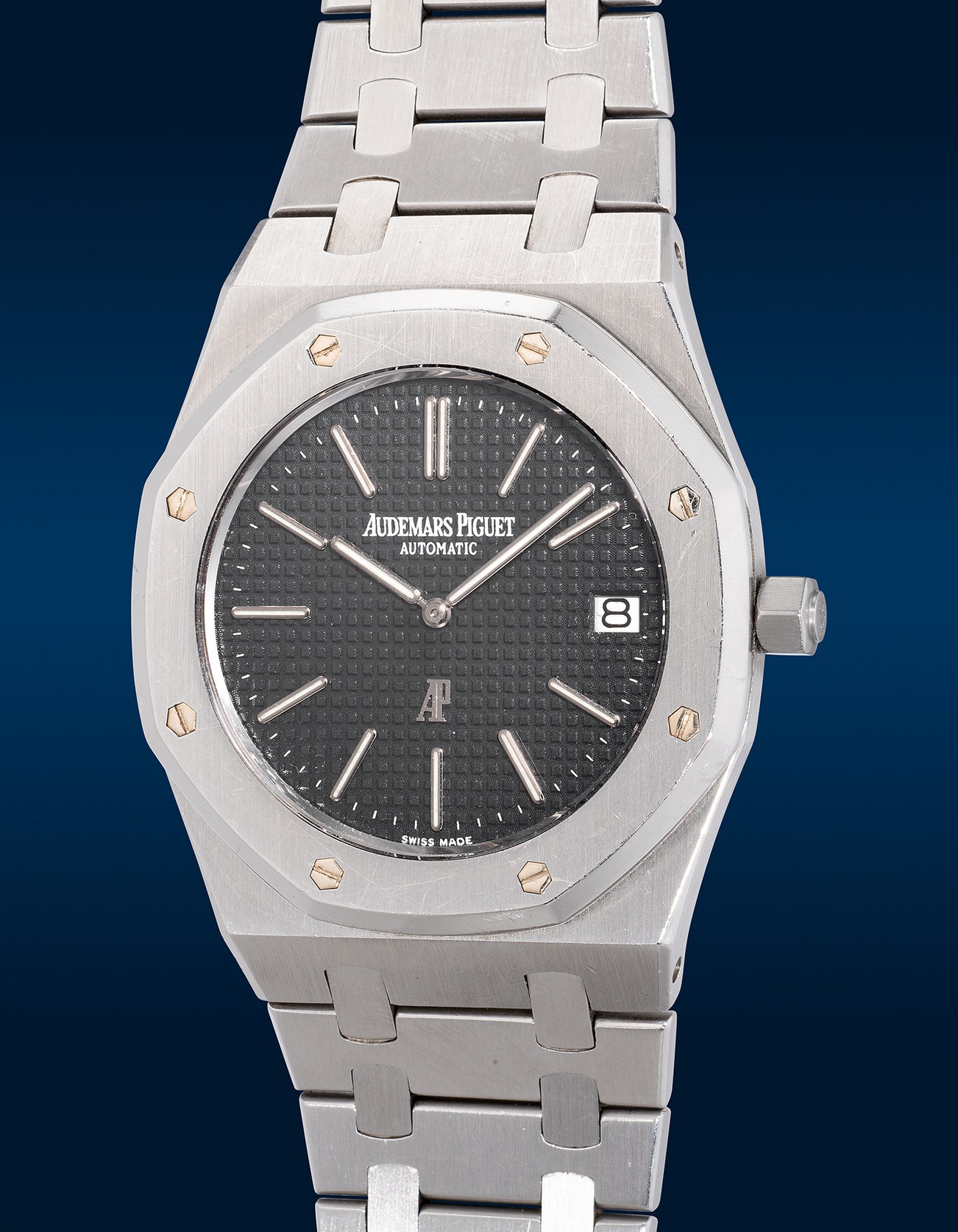 - Early examples featured the "AP" logo at 6 o'clock before later versions moved it to 12 o'clock. Collectors denote the "series" by the case number on the back, with the earliest designated "A-Series." This circa 1978 model with case number "C1945" hails from the original "C-Series". Nicknamed the "Jumbo" for its large 39mm size, the ref. 5402 pioneered oversized sports watches.