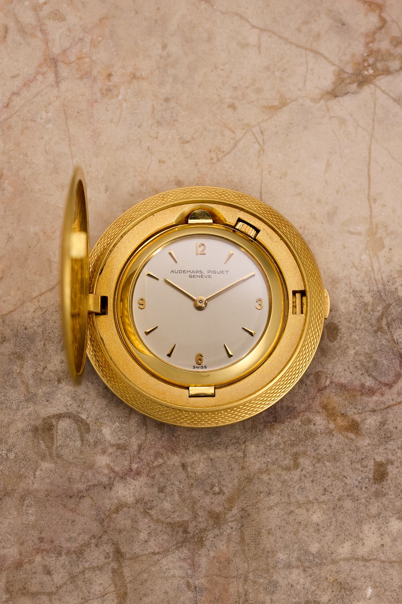 A rare and extremely well-preserved yellow gold hinged pocket watch with guilloché case