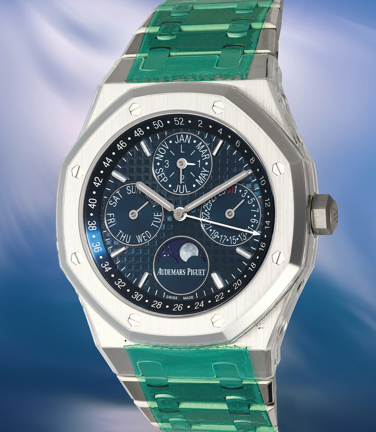 Today, the brand is best known for its Royal Oak models, a revolutionary luxury sports watch launched in 1972. Other key models include early minute repeating wristwatches, vintage chronograph wristwatches, such as the oversized reference 5020, perpetual calendar watches and the Royal Oak Offshore, first introduced in 1993.