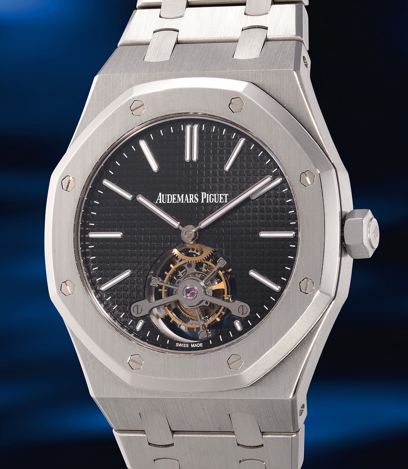 Presented in excellent condition and complete with all original accessories, including the warranty and presentation box, this is a rare opportunity to acquire an extraordinary Royal Oak tourbillon.