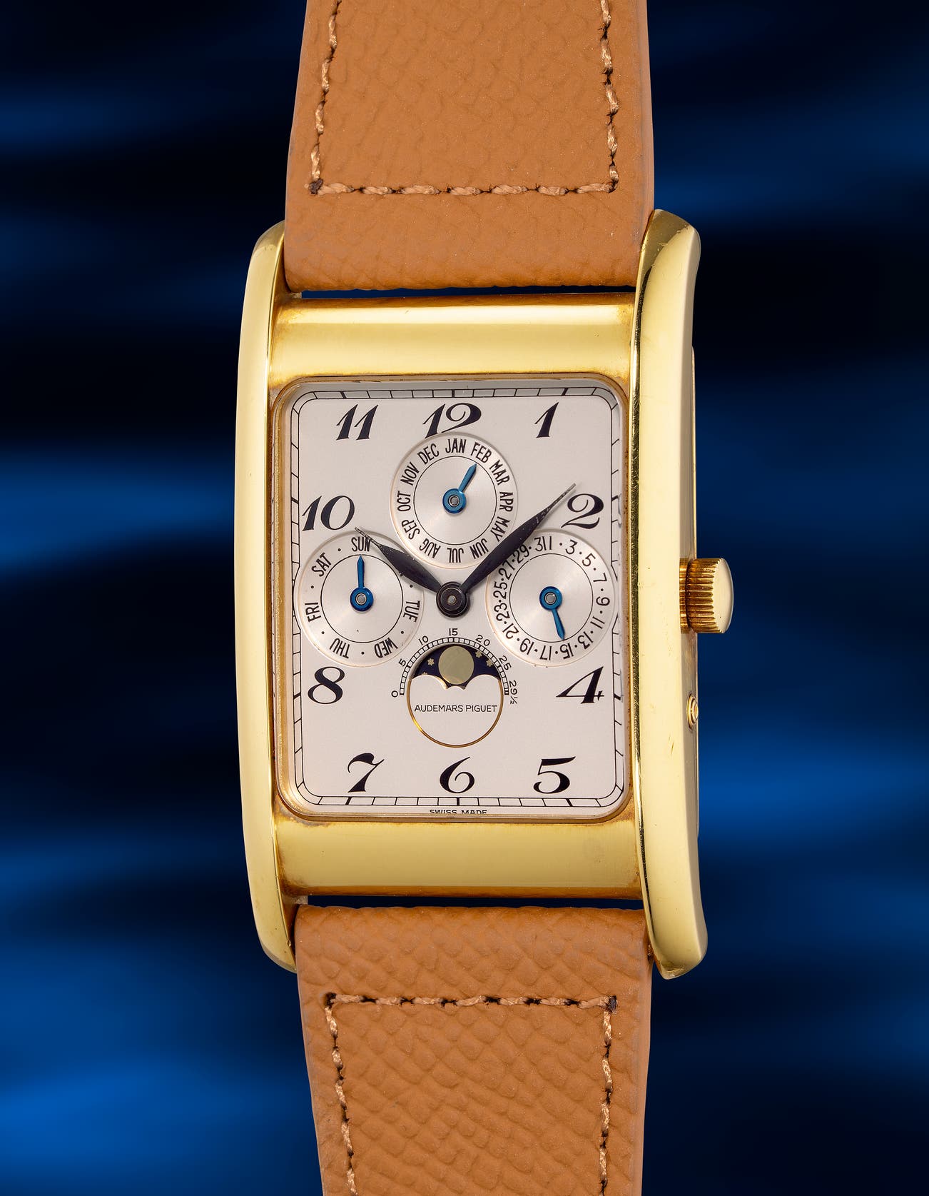 - Accompanied with its full set of accessories and confirmed by the Audemars Piguet Extract from the Archives, the present timepiece from 1992 represents a scarce find for the discerning collector who appreciates the enduring value of an artfully-made perpetual calendar from the illustrious house of Audemars Piguet.
