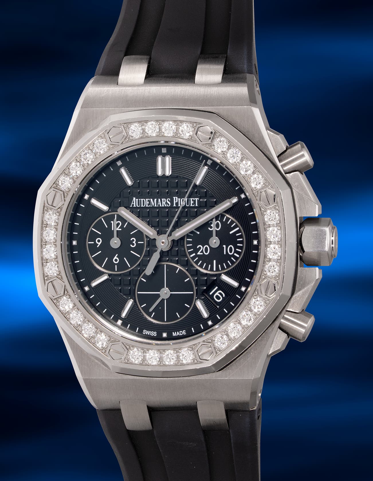 - The blend of stainless steel and diamonds strikes an ideal balance between luxury and functionality. The bezel is adorned with 32 brilliant-cut diamonds, totaling just over 1 carat.