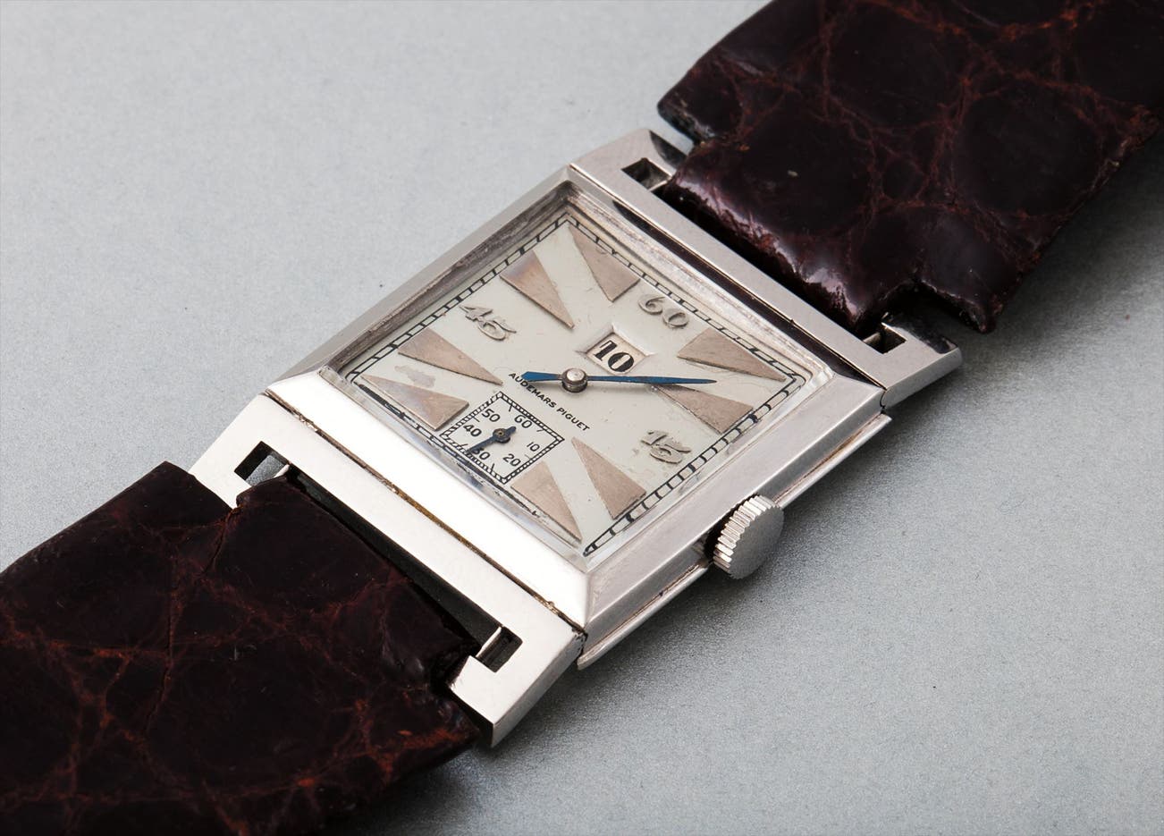 The present example is made in platinum, which for the time was exceedingly desirable and not commonly seen in wristwatches. According to Audemars Piguet's records, the movement of this watch was originally fitted in a two-tone gold case, and sold to Metric Watch in New York in 1929. The present case was consequently added at a later point, possibly already in the early 1930s, at the premises of their American distributor. Audemars Piguet's records, despite exhaustive research, do not contain traces in regards to this pairing.