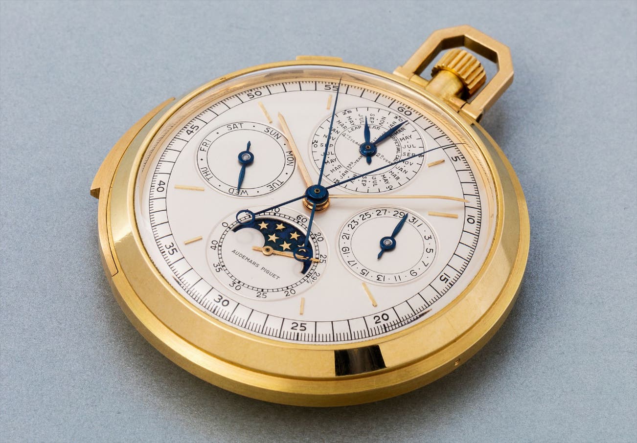Due to the economic challenges that followed World War II, most brands ceased the production of such extraordinarily costly pocket watches, but Audemars Piguet never stopped. This type of hand finished, ultra-complicated watch remains undervalued today, and presents an exciting opportunity for connoisseurs of the finest watches. The savvy wristwatch collector will clearly recognize that this pocket watch has strong aesthetical similarities with the AP reference 5516 Perpetual Calendar wristwatch - even though this model, the most valuable of all time, features neither a minute repeater, nor even a chronograph complication.