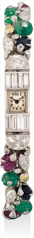 In the late 1920s, a time of economic expansion and wide spread growth filled creativity in areas of the arts, literature, architecture and design. With the crash in 1929 and the Great Depression that followed, they existed a rather uncertain era and the luxury jewelry houses and watch manufactures tried to encourage new spending by manufacturing exquisitely decorated objects such as the tutti-frutti bracelet watch.