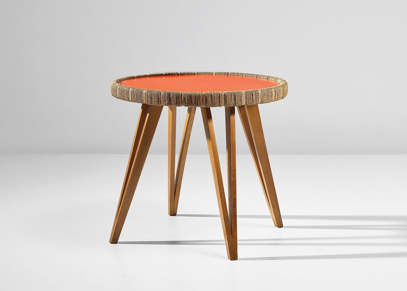 Painted plywood, beech, straw.