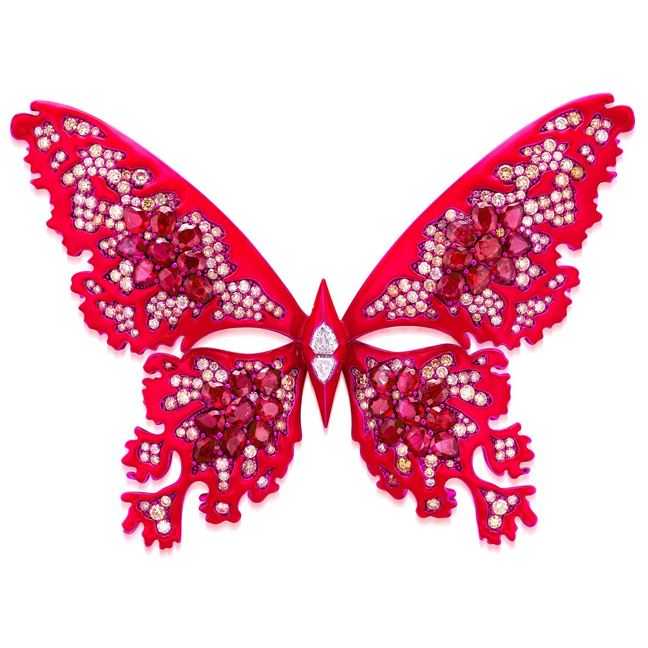 From the Ikhor collection, signifying bloodline and eternity. In Greek mythology, Ikhor represents the blood of gods and immortals. He believes the colour red is powerful and associated with strong emotions such as love, passion, sex and excitement. Elements of red often appears in this collection. Butterfly is associated with human souls in ancient Greek. The intricate openwork pattern on the butterfly mimics burning flames, signifying passion and freedom. This is also a metaphor along the lines of rebirth, eternity and spiritual transformation.