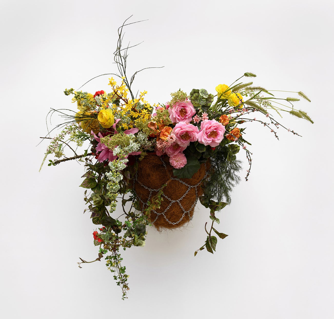 basketball hoop, silk flowers and synthetic soil