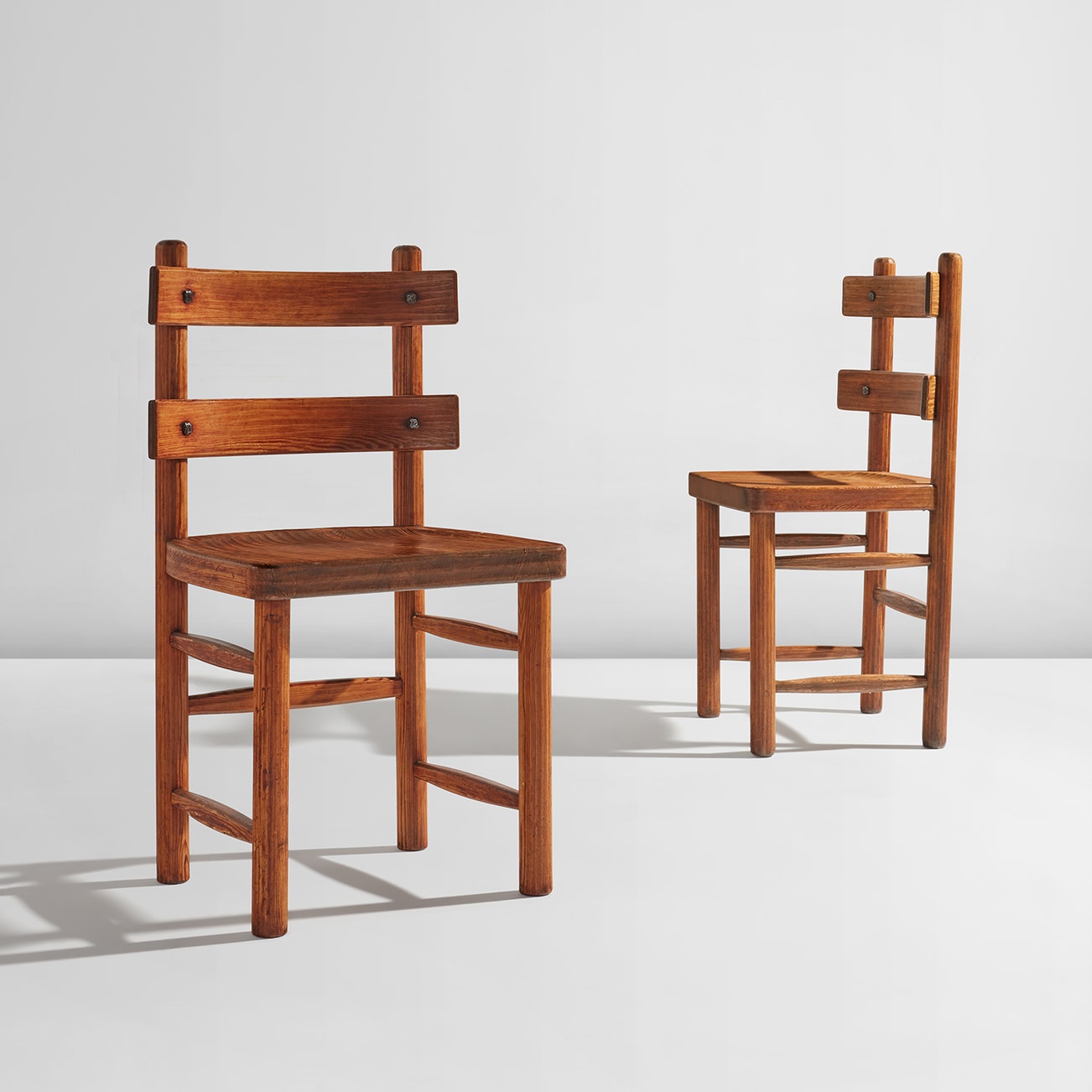 Produced by AB Nordiska Kompaniet, Stockholm, Sweden. Underside of one chair with metal plaque impressed A B NORDISKA KOMPANIET/R 33845 - 23 4 29 and one chair with metal plaque impressed with manufacturer's mark and 33845 - C29 1 32.