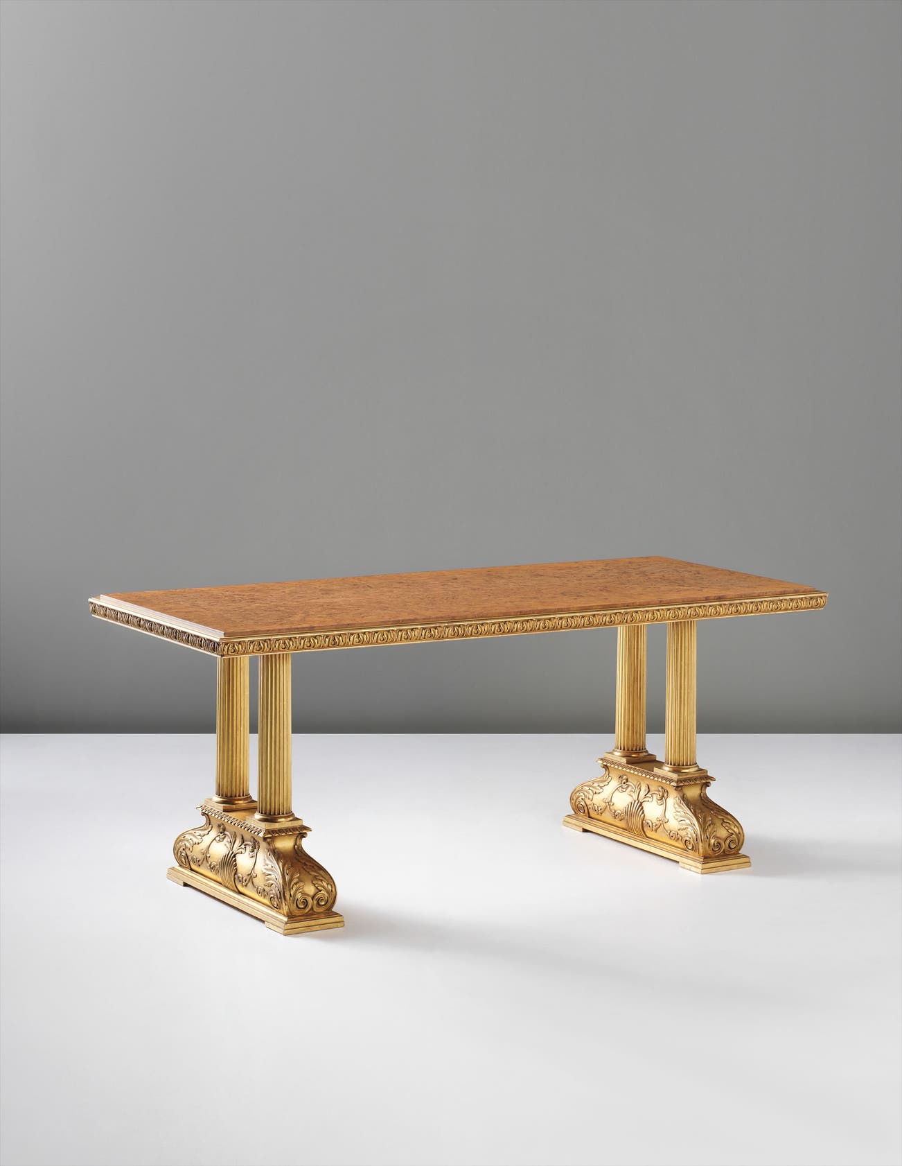 Gilded birch, burr walnut-veneered wood.
