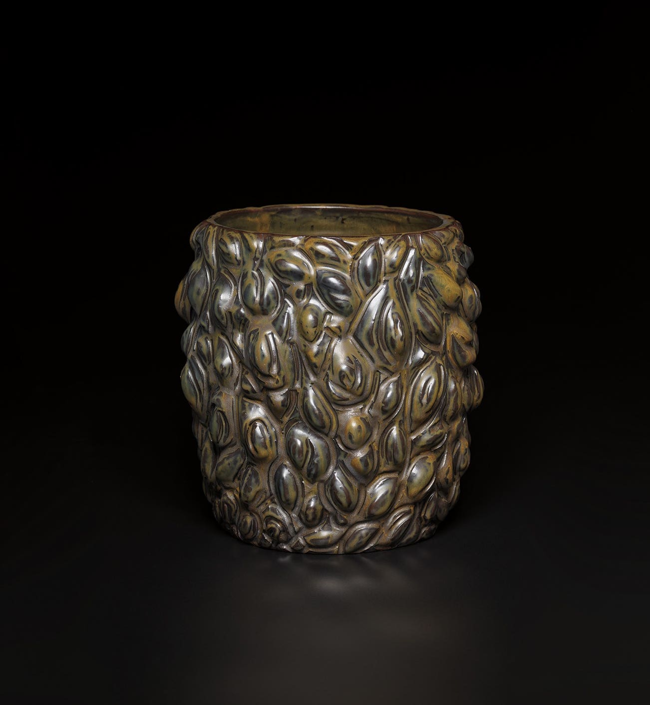 In his 1949 book Den spirende Stil, Axel Salto writes that the expression of movement or growth is inherent to the ceramic form, explaining, ‘The vase is like a living organism; the body buds, the buds develop, and sprouting, even prickly, vases are the result of this life’ (Axel Salto, Den spirende Stil, Copenhagen, 1949, p. 62). The resulting abstract forms observed from details in nature and expressed in stoneware with rich glazes are then further transformed through the tension of the firing process. Salto reinterpreted classical ceramic forms (such as the vase, bowl, jar), creating organic, asymmetrical designs that exploited the expressive potential of the idiosyncratic glazes, from which the idea for his ‘Budding’ style developed. In the form of high-relief carved buds in the present unique and large vase in the ‘Budding’ style, circa 1940 (lot 93), Salto created ‘obstacles’ in which the glaze flowed downward and around, allowing the ceramic body to re-emerge in the extreme heat of the kiln. Describing the process Salto writes, ‘The glaze runs round the raised points, which break through and push the glaze away so the piece is laid bare. The glaze concentrates and is thinned, and the colour changes with the thickness of the layer. Thereby arises the interplay, peculiar to stoneware, between piece and glaze: the dramatic, eruptive, natural, which for me is the characteristic feature of stoneware’ (Salto, pp. 59-60).