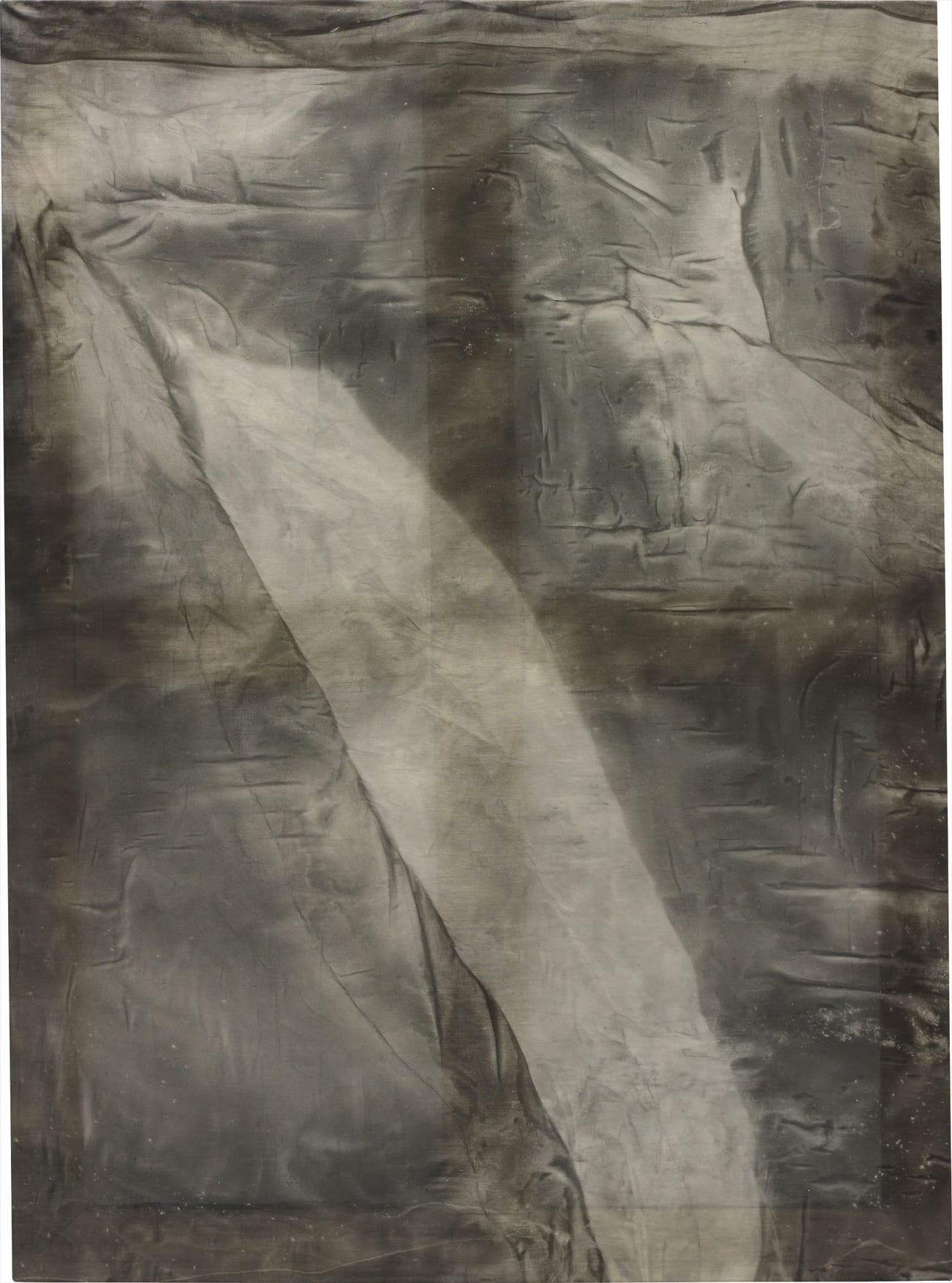ash, alcohol, vinegar, ink, binder on cotton silk