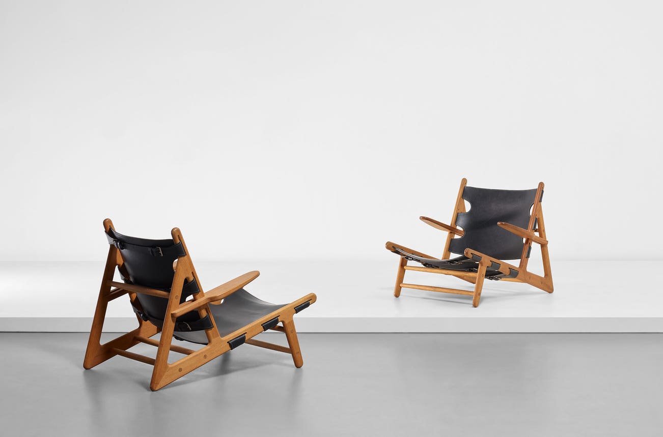 Designed 1950, produced after 1972. Manufactured by Fredericia Stolefabrik, Copenhagen, Denmark. Underside of each with manufacturer's metal label impressed FREDERICIA/FURNITURE/Design: Børge Mogensen.