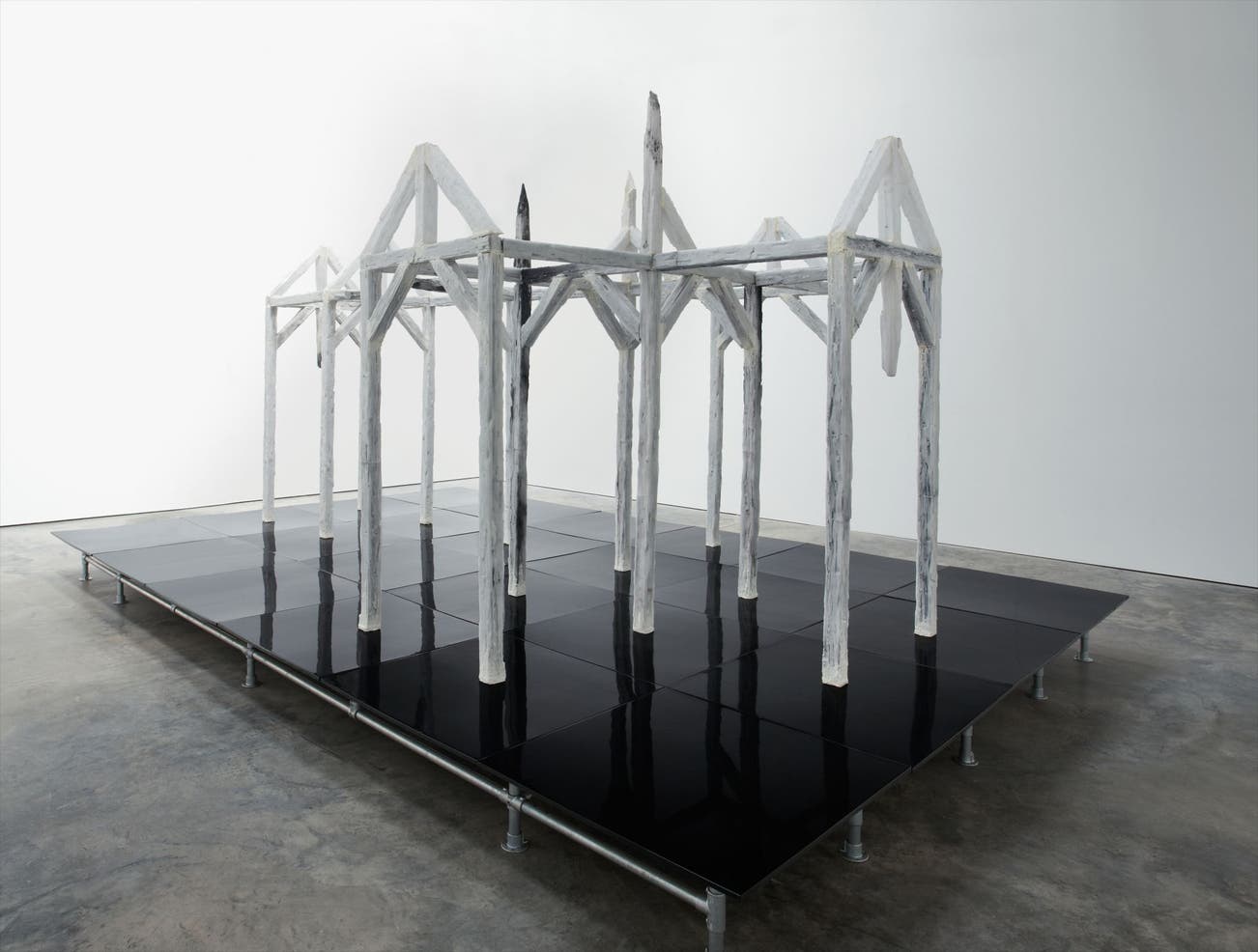 The immersive installation by American artist Banks Violette is a testament to the artists continued exploration of youth counterculture and the search for – in the artist’s words – a “lived-experience.” Harrowing in its form, rooted in an act of violence attuned to the melodies of Norwegian Death Metal, Untitled (Church) embodies what Violette powerfully describes as, “the idea that this aesthetic thing could instil dread in people."