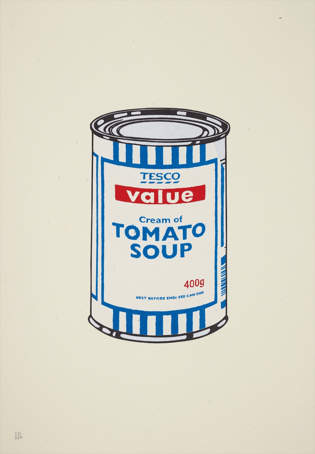His graffiti, paintings and screenprints use whimsy and humour to satirically critique war, capitalism, hypocrisy and greed — with not even the Royal family safe from his anti-establishment wit.