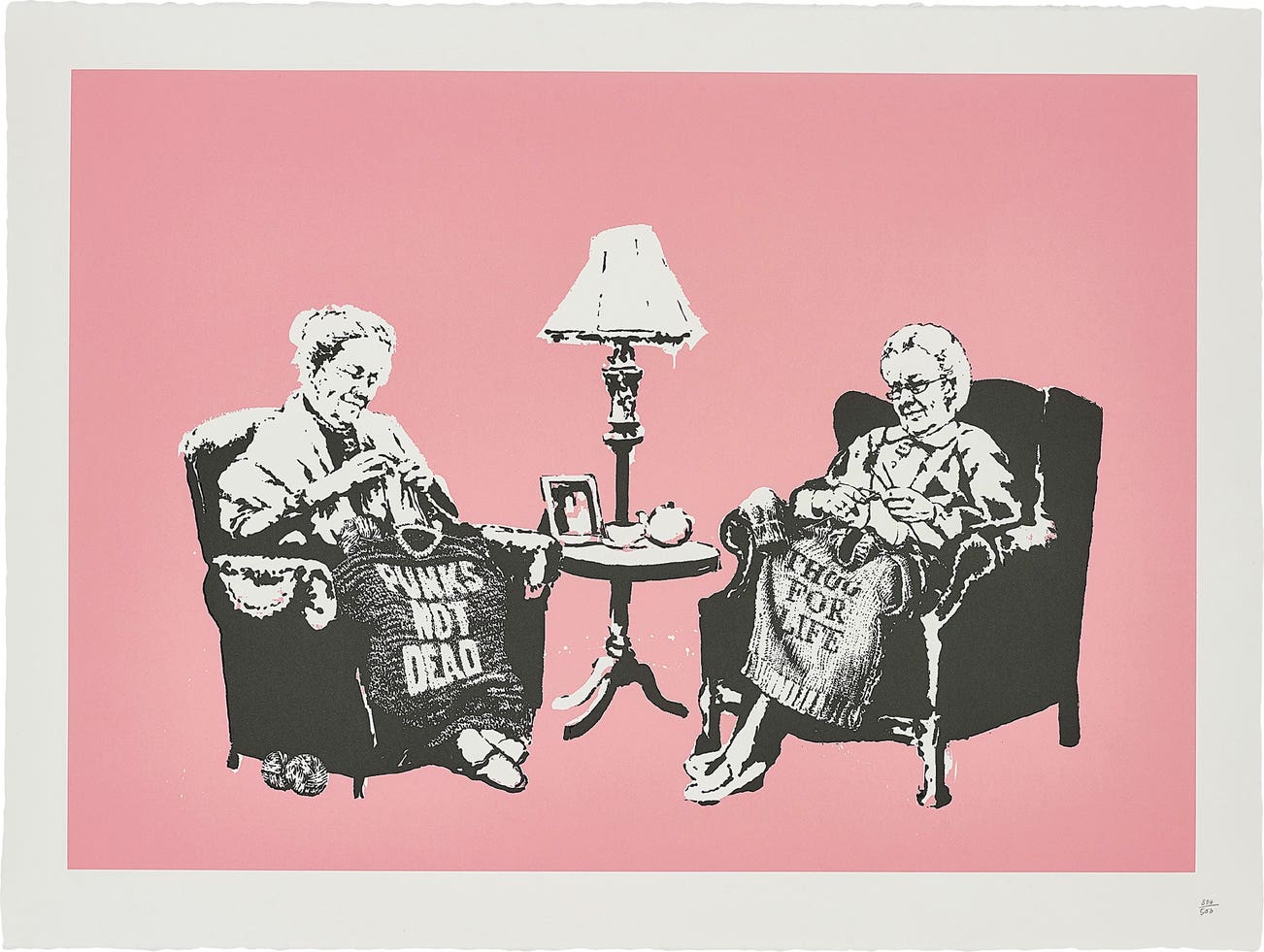His graffiti, paintings and screenprints use whimsy and humour to satirically critique war, capitalism, hypocrisy and greed — with not even the Royal family safe from his anti-establishment wit.