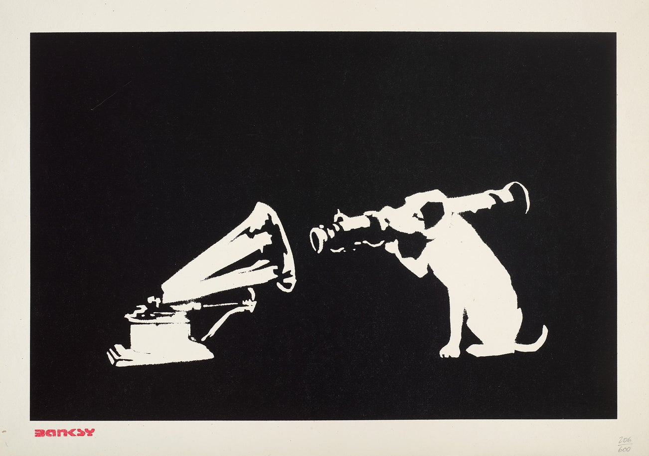 His graffiti, paintings and screenprints use whimsy and humour to satirically critique war, capitalism, hypocrisy and greed — with not even the Royal family safe from his anti-establishment wit.