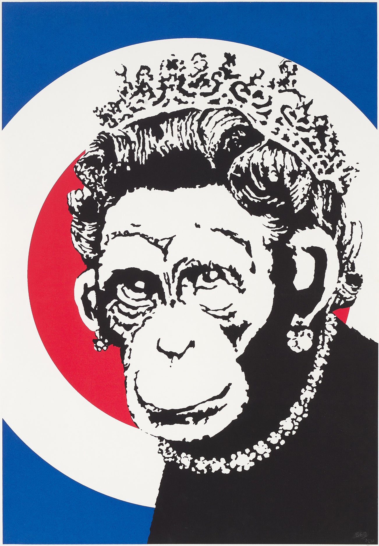 His graffiti, paintings and screenprints use whimsy and humour to satirically critique war, capitalism, hypocrisy and greed — with not even the Royal family safe from his anti-establishment wit.