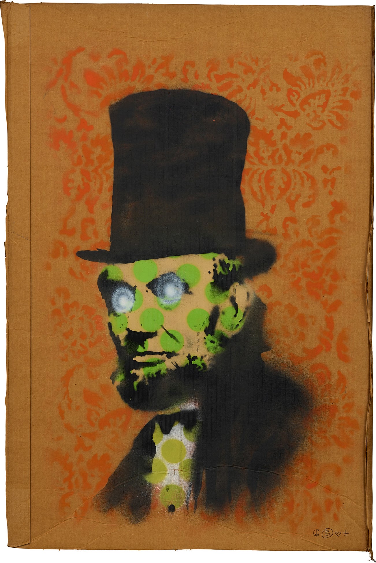 His graffiti, paintings and screenprints use whimsy and humour to satirically critique war, capitalism, hypocrisy and greed — with not even the Royal family safe from his anti-establishment wit.