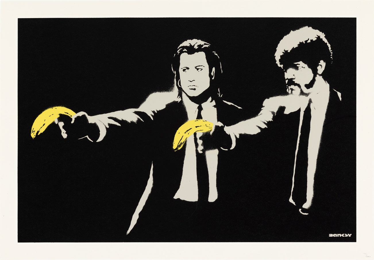 His graffiti, paintings and screenprints use whimsy and humour to satirically critique war, capitalism, hypocrisy and greed — with not even the Royal family safe from his anti-establishment wit.
