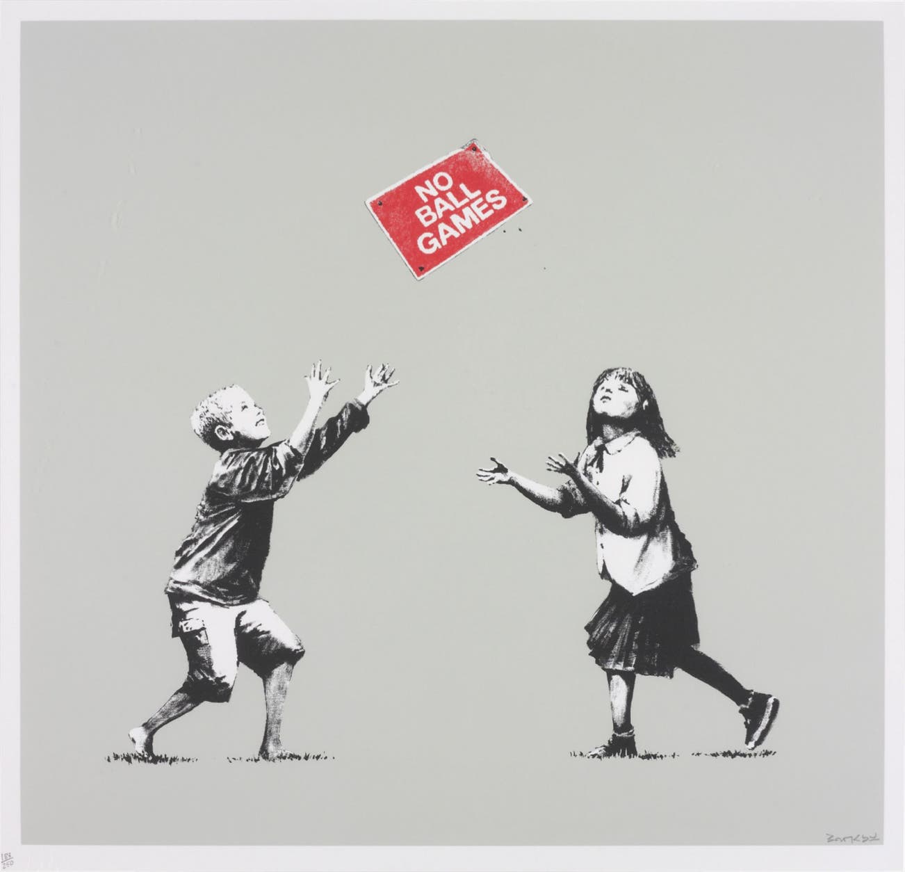His graffiti, paintings and screenprints use whimsy and humour to satirically critique war, capitalism, hypocrisy and greed — with not even the Royal family safe from his anti-establishment wit.