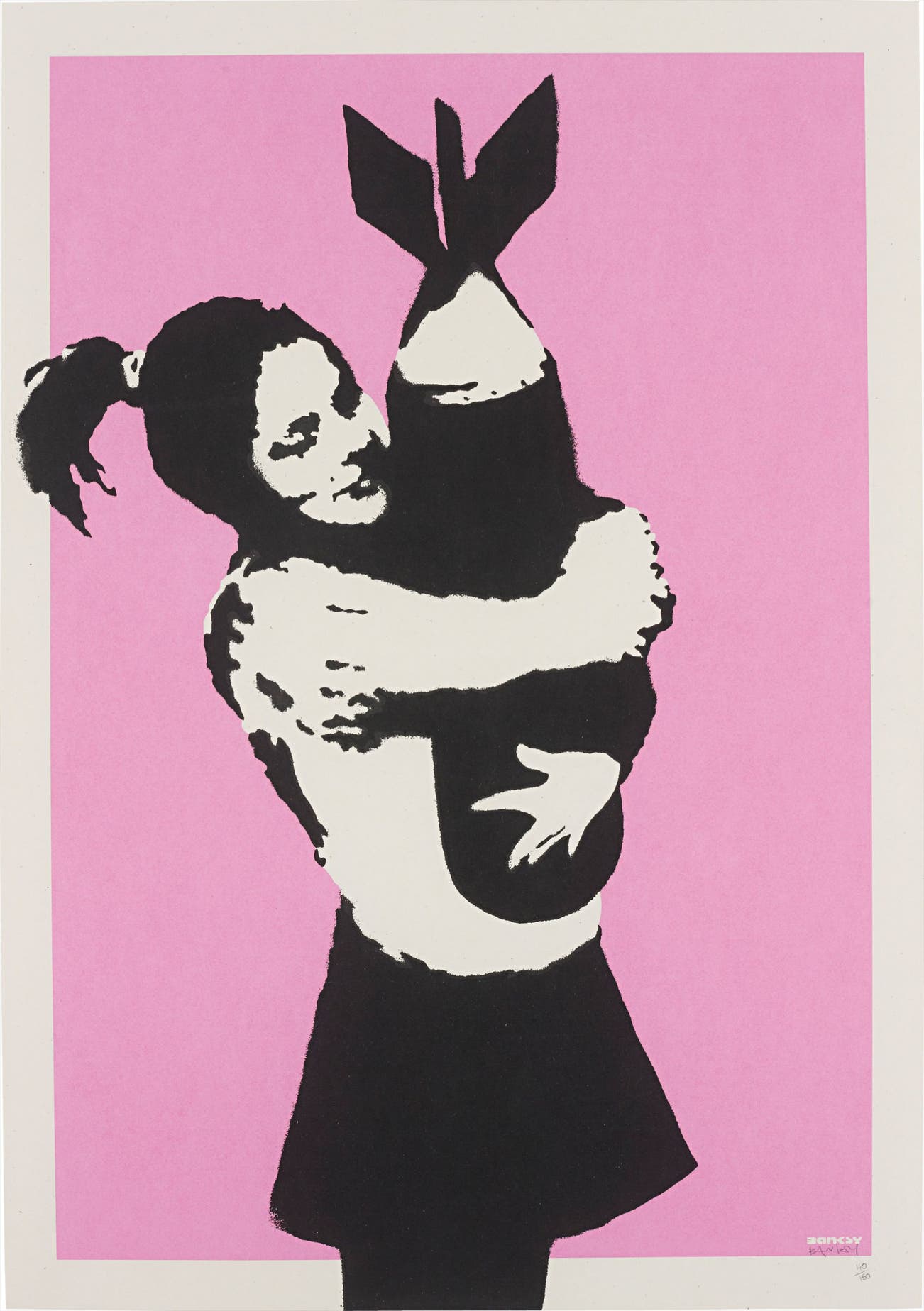 British | 1975Anonymous street artist Banksy first turned to graffiti as a miserable fourteen year old disillusioned with school. Inspired by the thriving graffiti community in his home city, Bristol, Banksy's works began appearing on trains and walls in 1993, and by 2001 his blocky, spray-painted works had cropped up all over the United Kingdom. Typically crafting his images with spray paint and cardboard stencils, Banksy is able to achieve a meticulous level of detail. His aesthetic is clean and instantly readable due to his knack for reducing complex political and social statements to simple visual elements.