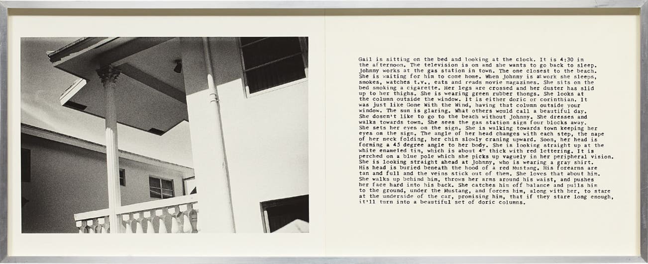 black and white photograph and text, in artist's frame