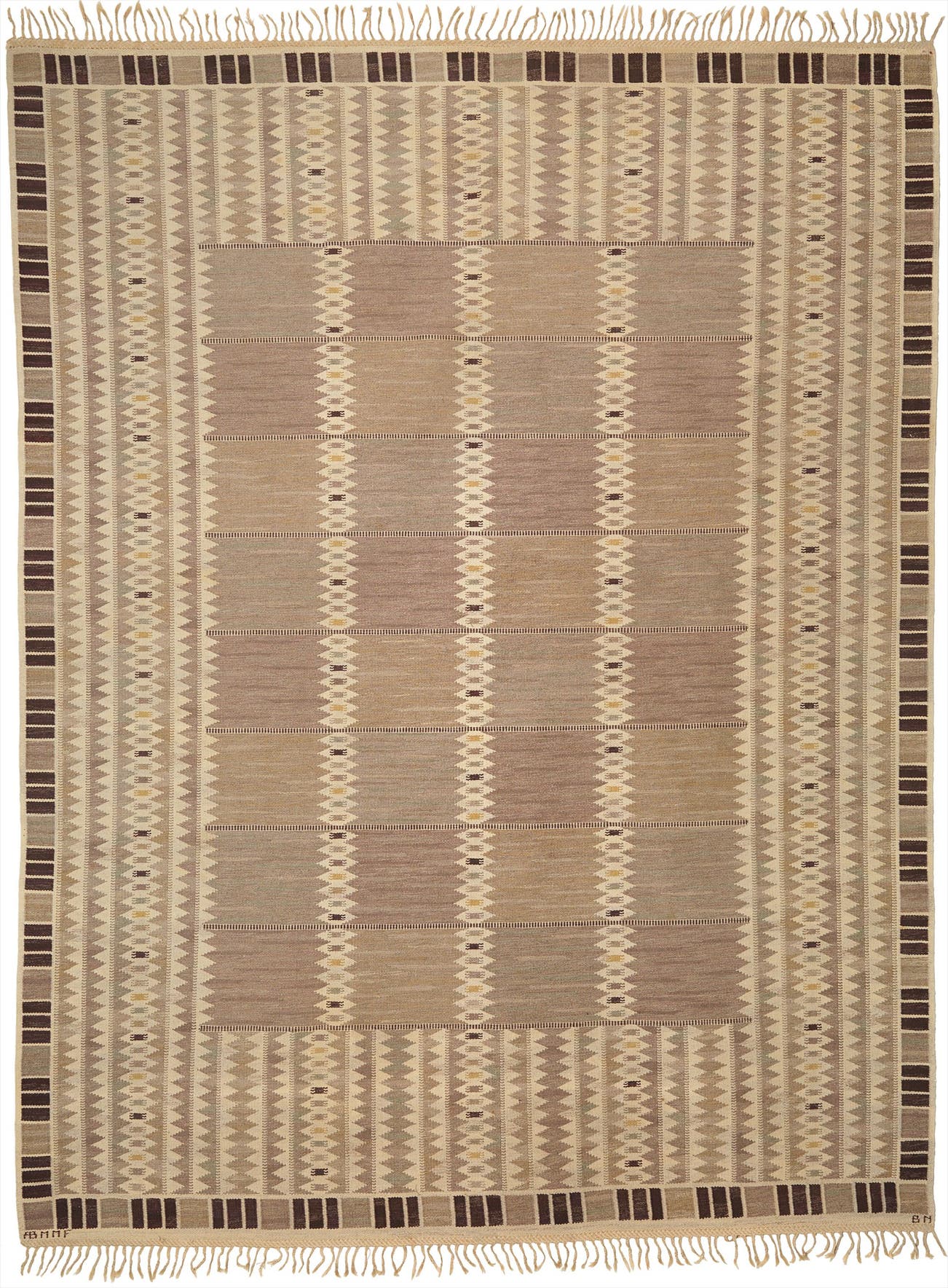 Produced by Märta Måås-Fjetterström AB and woven by Maja Jansson, Båstad, Sweden. Woven with manufacturer’s mark AB MMF and artist's initials BN.