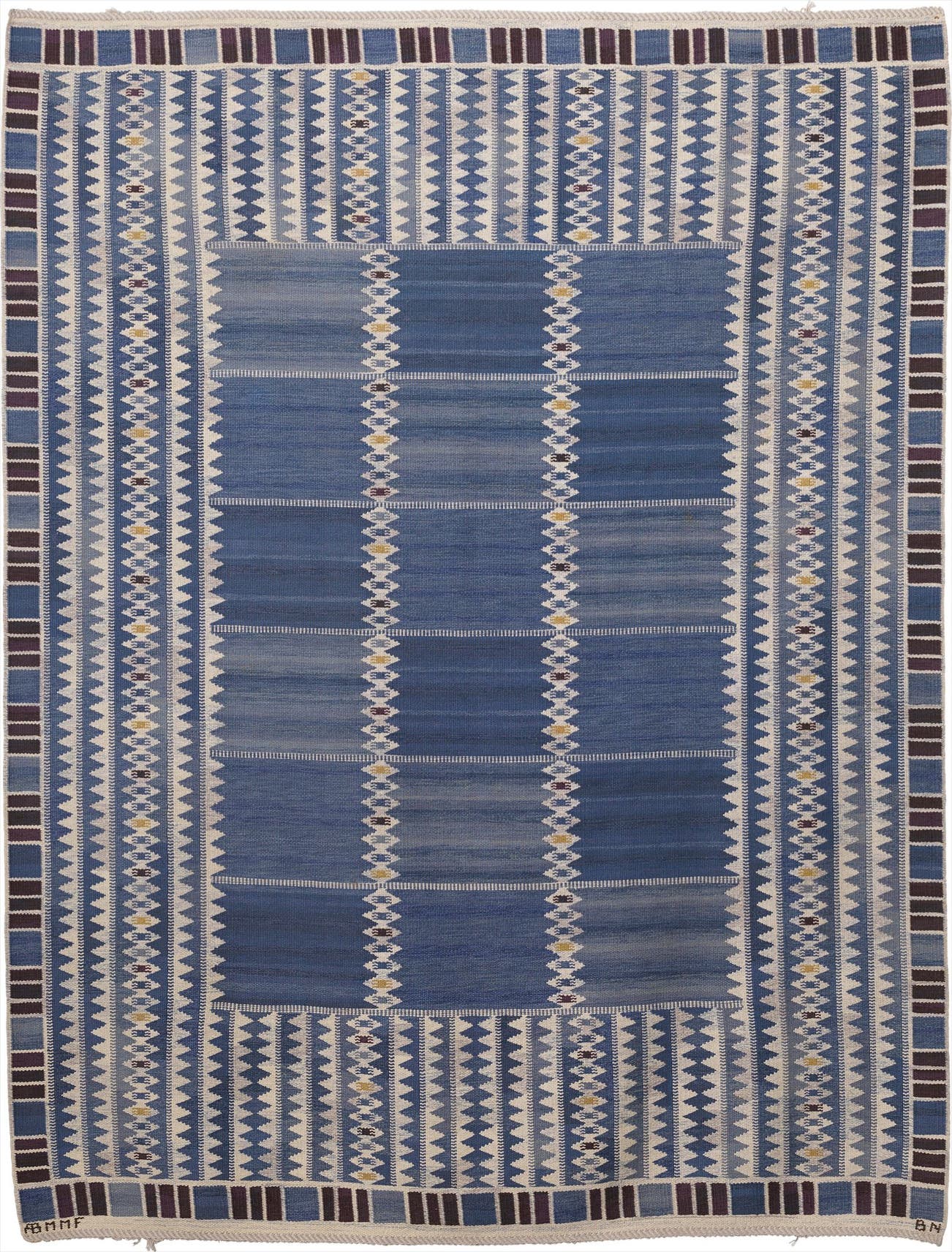 Manufactured by Märta Måås-Fjetterström AB, Båstad, Sweden. Woven manufacturer’s mark with AB MMF and artist’s initials BN.