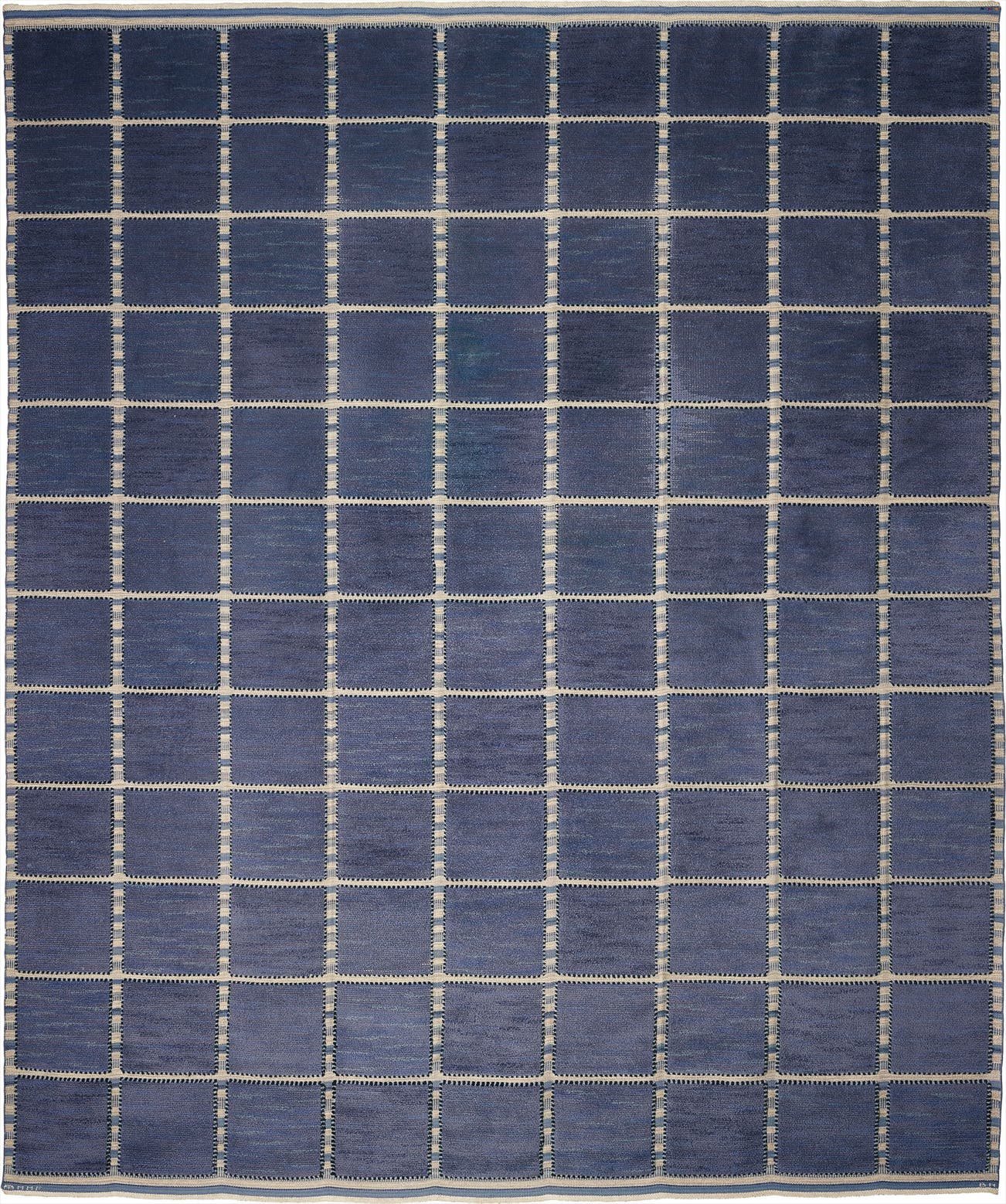 Large 'Gyllenrutan, blå (The Golden Square, blue)' rug