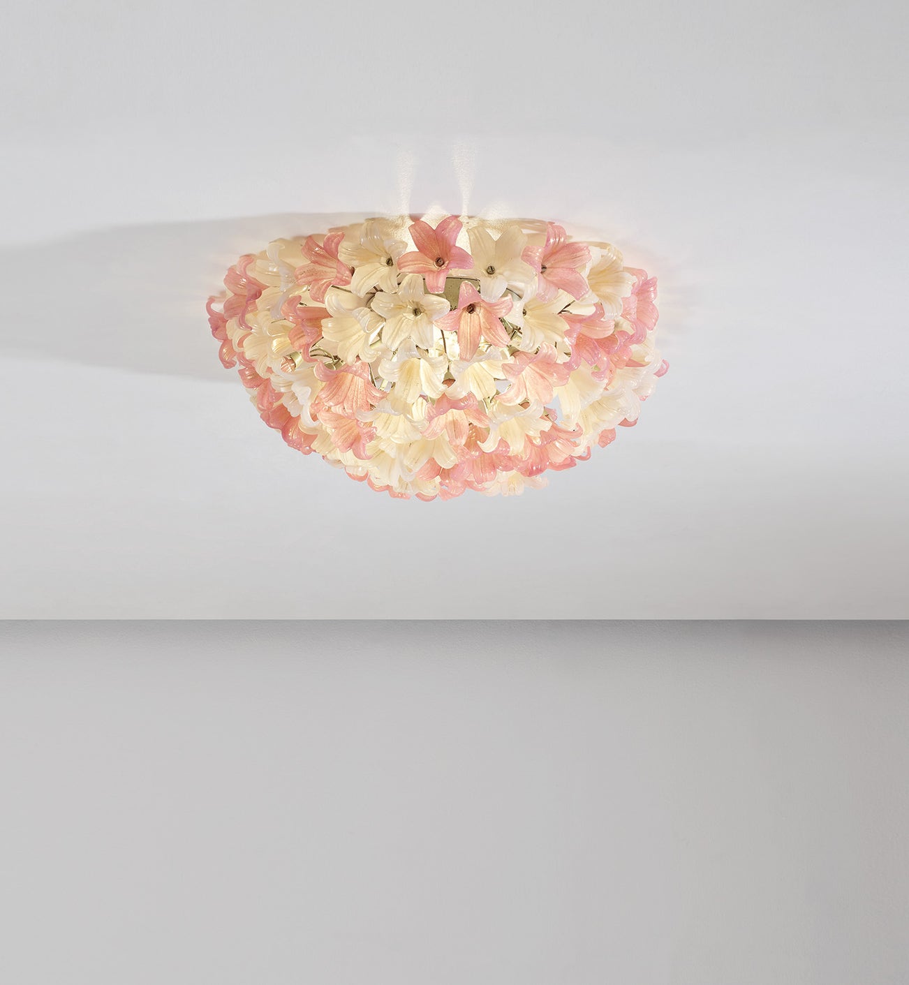 Coloured glass with applied gold leaf, painted steel, painted metal.