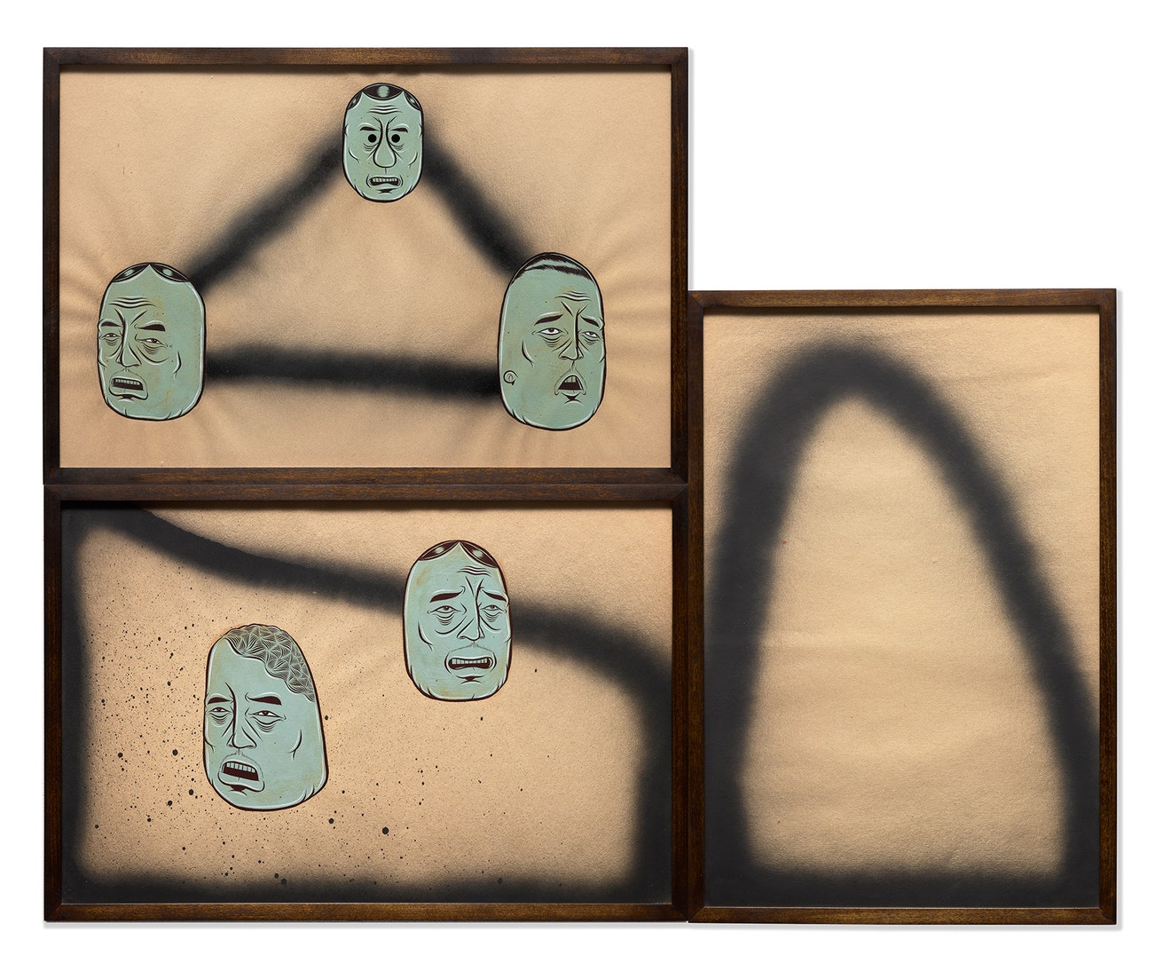mixed media on paper, in artist's frame, in 3 parts