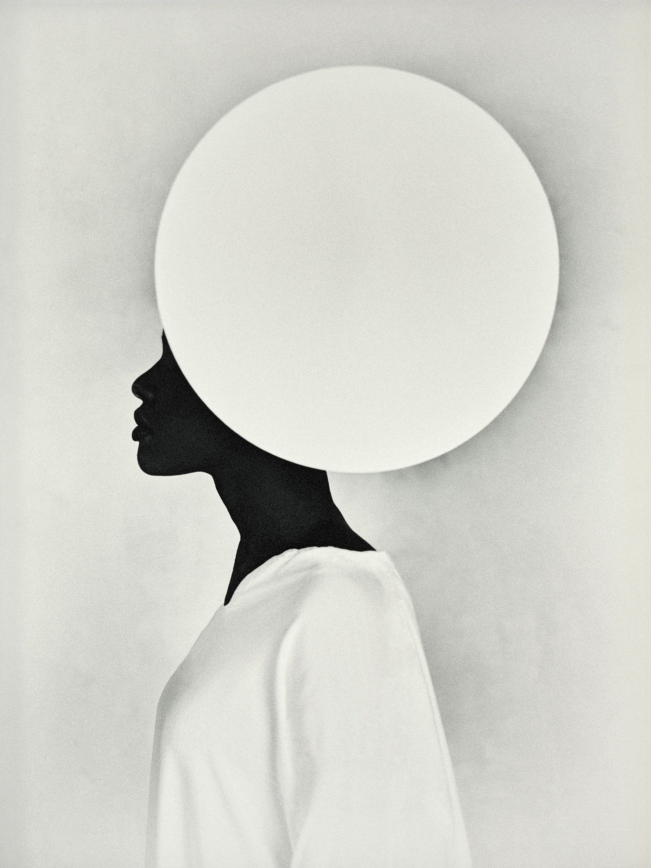 In this bold composition, a model’s profile, her head and part of her face obscured by a large, flat circle, is outlined against a plain background. ‘Circle arose out of the curiosity to combine geometrical shapes with my models. The goal was to create an abstract image in which a sign of humanity plays an important role’, Bastiaan Woudt explains. ‘By largely "hiding" the models you create a distance, but by adding a human aspect, such as a hand or silhouette of a face, it remains tangible and recognisable.’ A self-taught photographer, Woudt has developed his distinctive monochromatic aesthetic through experimentations in both in-camera and post-production techniques.