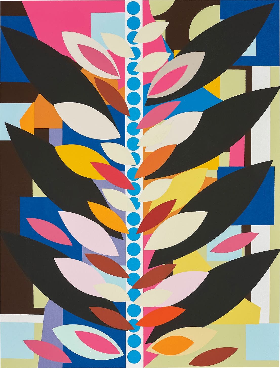 Brazilian | 1960Beatriz Milhazes is best known for her vibrantly colored yet calculated compositions. The artist has cited Baroque architecture, lace work, Carnival decoration and the flora of the Jardim Botanico in Rio de Janiero chief among her inspirations. Milhazes' artistic practice is akin to monotype or collage in that the artist first paints motifs directly onto transparent plastic sheets and later applies them to the canvas, leaving the plastic to dry. The superimposed image allows for overlapping and layering, resulting in a textured canvas and a distorted central focal point. While seemingly chaotic, Milhazes' compositions are perfectly balanced due to the artist's technically sophisticated use of geometric forms and chromatic color palate.