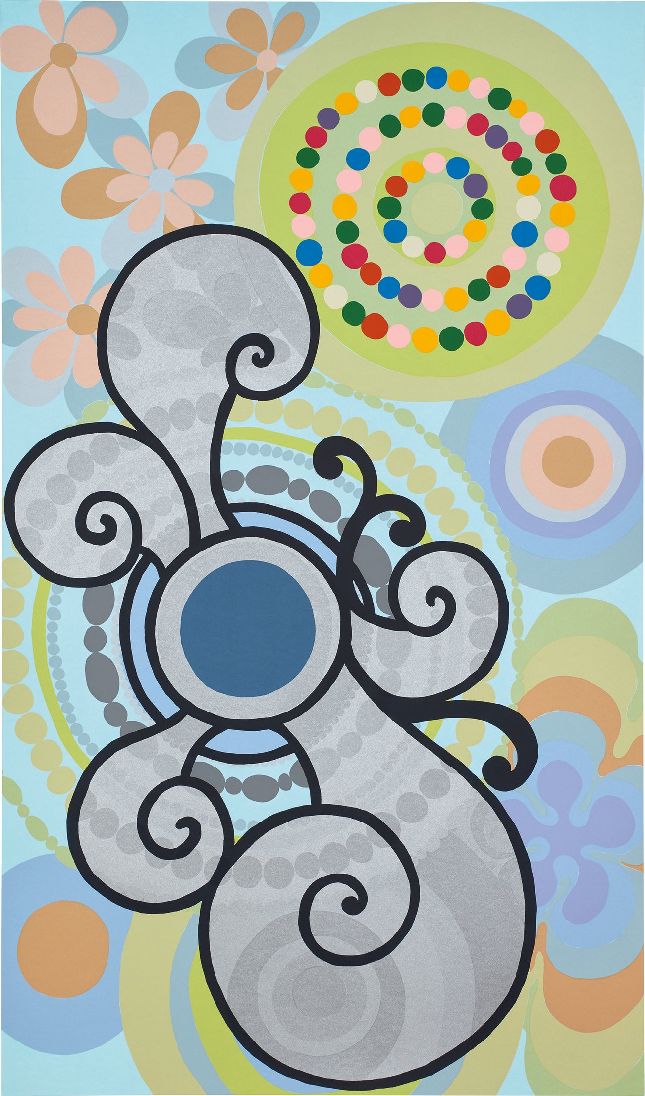 Brazilian | 1960Beatriz Milhazes is best known for her vibrantly colored yet calculated compositions. The artist has cited Baroque architecture, lace work, Carnival decoration and the flora of the Jardim Botanico in Rio de Janiero chief among her inspirations. Milhazes' artistic practice is akin to monotype or collage in that the artist first paints motifs directly onto transparent plastic sheets and later applies them to the canvas, leaving the plastic to dry. The superimposed image allows for overlapping and layering, resulting in a textured canvas and a distorted central focal point. While seemingly chaotic, Milhazes' compositions are perfectly balanced due to the artist's technically sophisticated use of geometric forms and chromatic color palate.