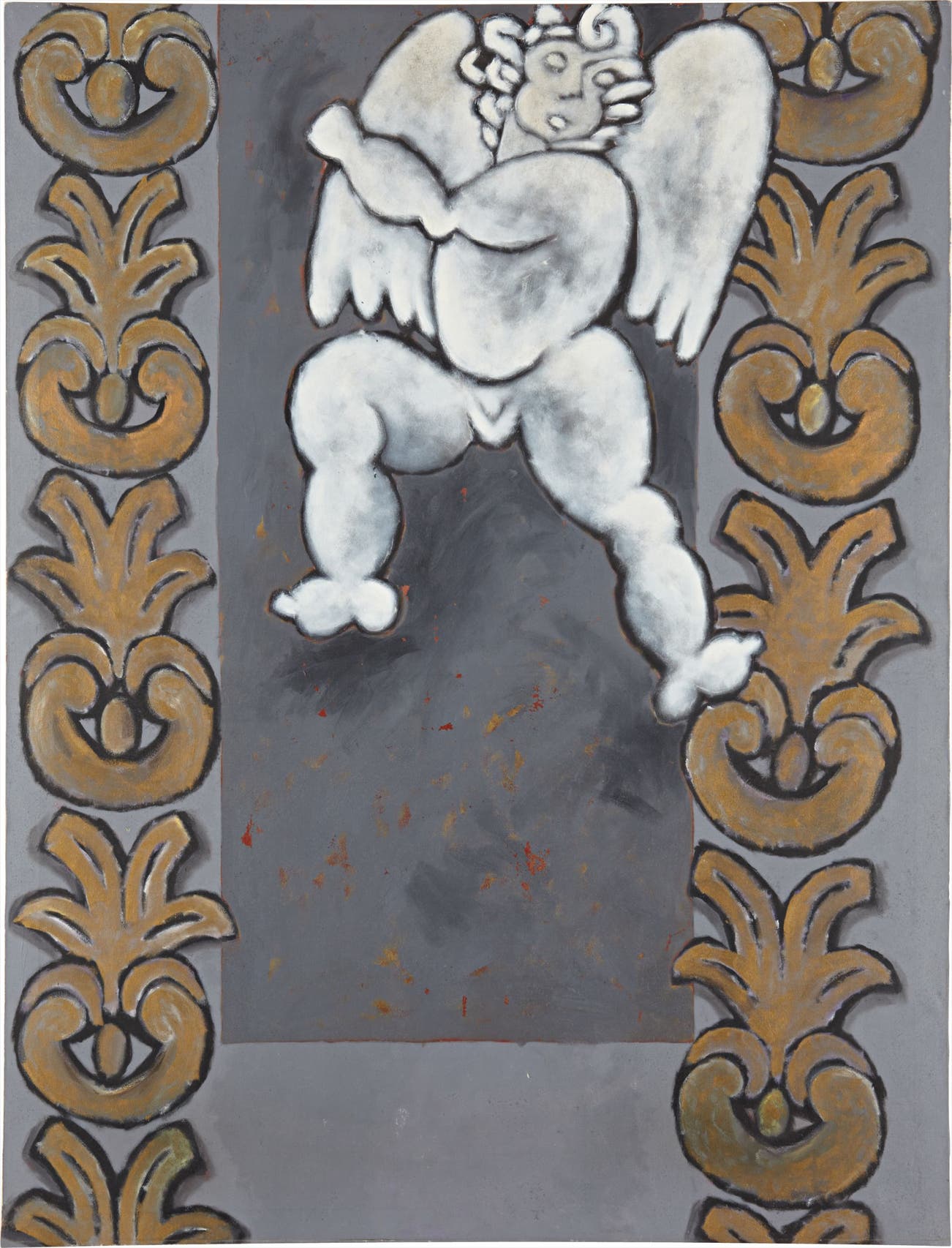 In juxtaposing a cherub— the icon perhaps most synonymous with European classicism—with her own contemporary oeuvre and propensity to compress space, Milhazes creates a work that is distinctly her own, while also paying homage to her early Baroque influences. The artist has long spoken of her desire to combine influences from European painting with her native Brazilian culture. On the subject she has noted, "Brazilian painting first developed out of European painting. In Brazil, if you wanted to be a painter you needed to begin with the concepts of painting developed there. [There was an idea that] we could 'eat' European culture and combine it with some aspects of ours." Teu sangue se transformará em flores highlights Milhazes' artistic process both conceptually and technically—it appropriates traditions of the past through a distinctly contemporary conceptual approach. The work ultimately represents the artist's ode to painting's limitless potential to expose and interpret the complex negotiations of visual culture across space and time.
