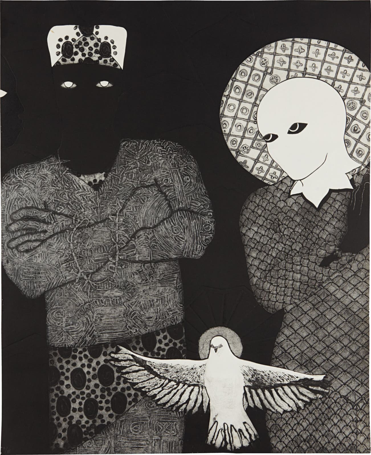 Numbered "3/VI" lower left. Signed "Belkis Ayón Manso" lower right. Further titled and inscribed "Sin Título 71 x 88,2 cm No 4 '... yo he sido la causa de tanto dolor'" on the reverse. This work is number 3 from an edition of 6. This work is accompanied by a certificate of authenticity issued by the Estate of Belkis Ayón.