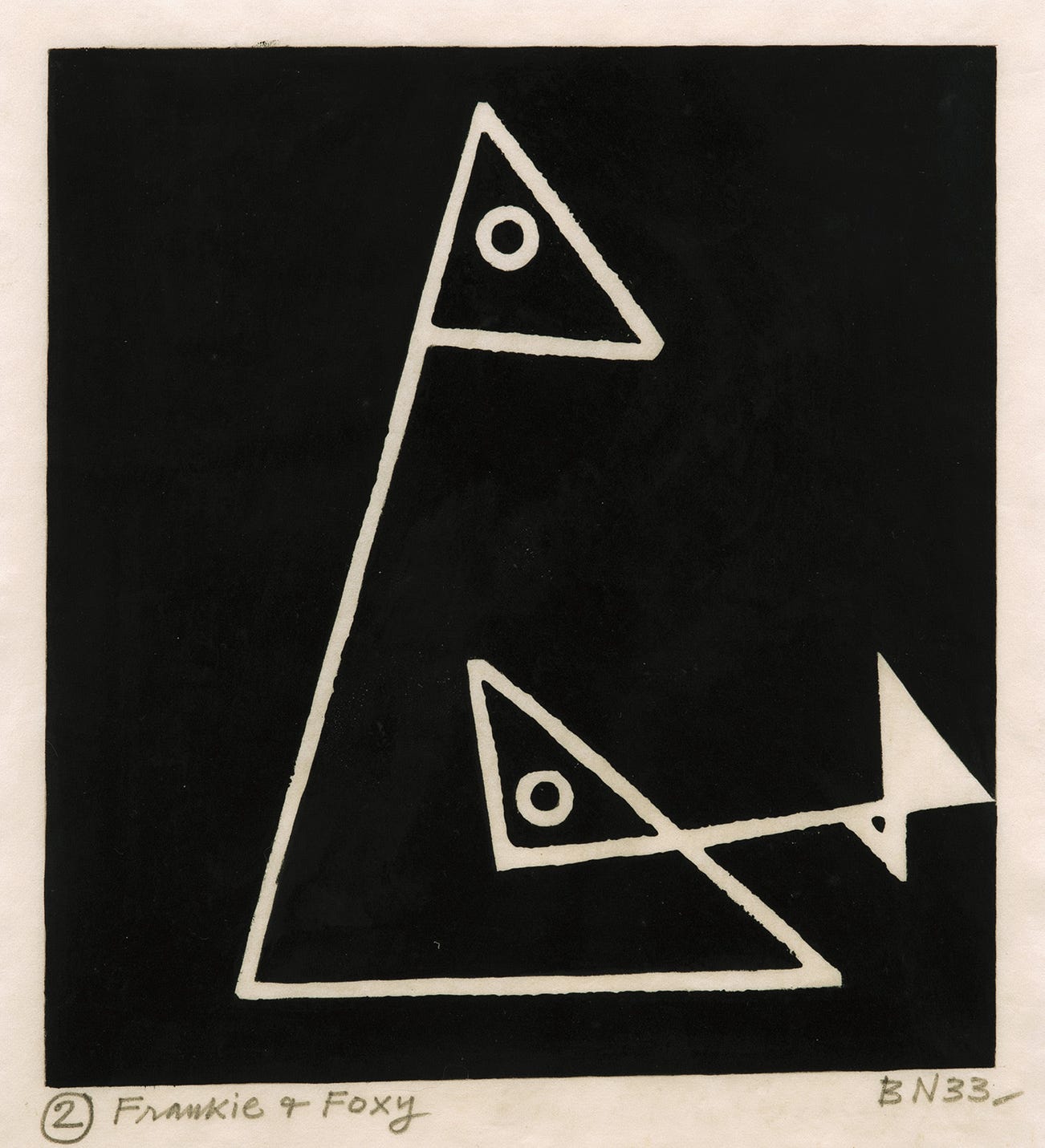 Signed with initials, titled, dated and annotated '2' in a circle and 'Frankie & Foxy' in pencil, one of possibly two impressions, framed.