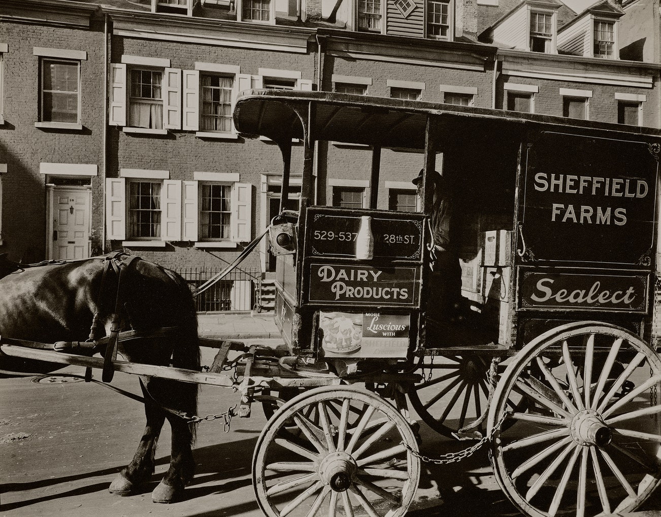 Milk Wagon and Old Houses, 8-10 Grove Street, Manhattan