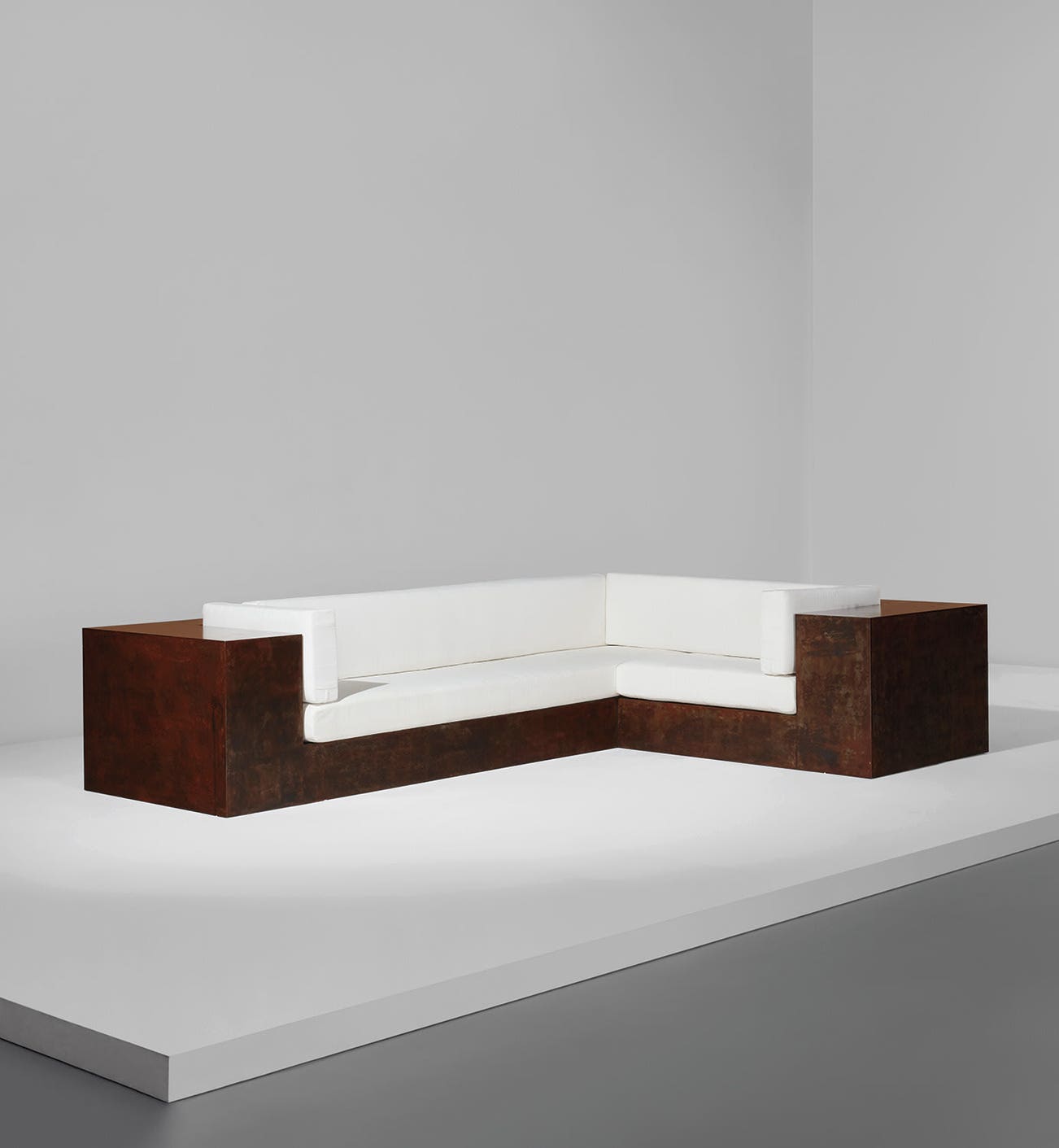 In 1968, Venet moved to a loft in downtown Manhattan. Tired of his existing furnishings, Venet decided to create his own furniture, designing them with the same principles expressed in his artistic practice. Around the same time, Judd—also out of practical necessity—was drawing on similar inspirations, applying his sculptural background to furniture designs for his Spring Street loft. Like Judd’s work, Venet’s pieces are austere yet formidable, certainly distinct from his sculptural practice, but nevertheless inextricably linked to his main conceptual and artistic preoccupations.