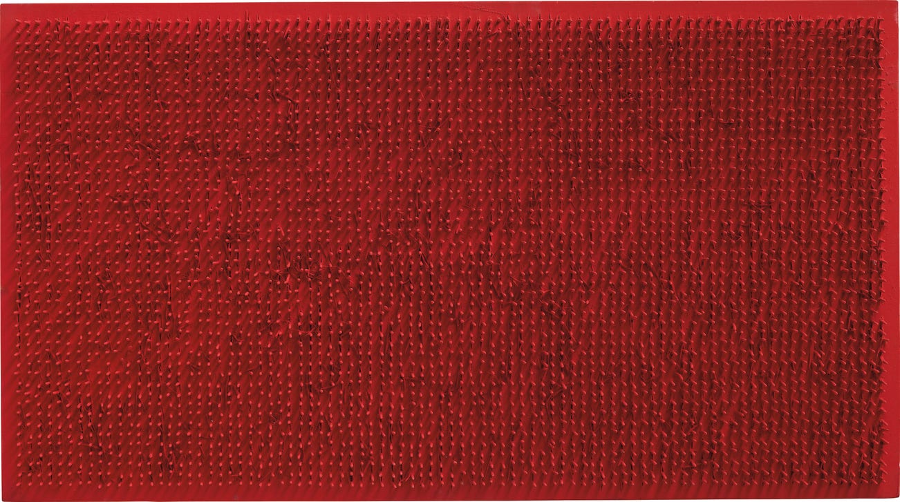 acrylic and nails on panel