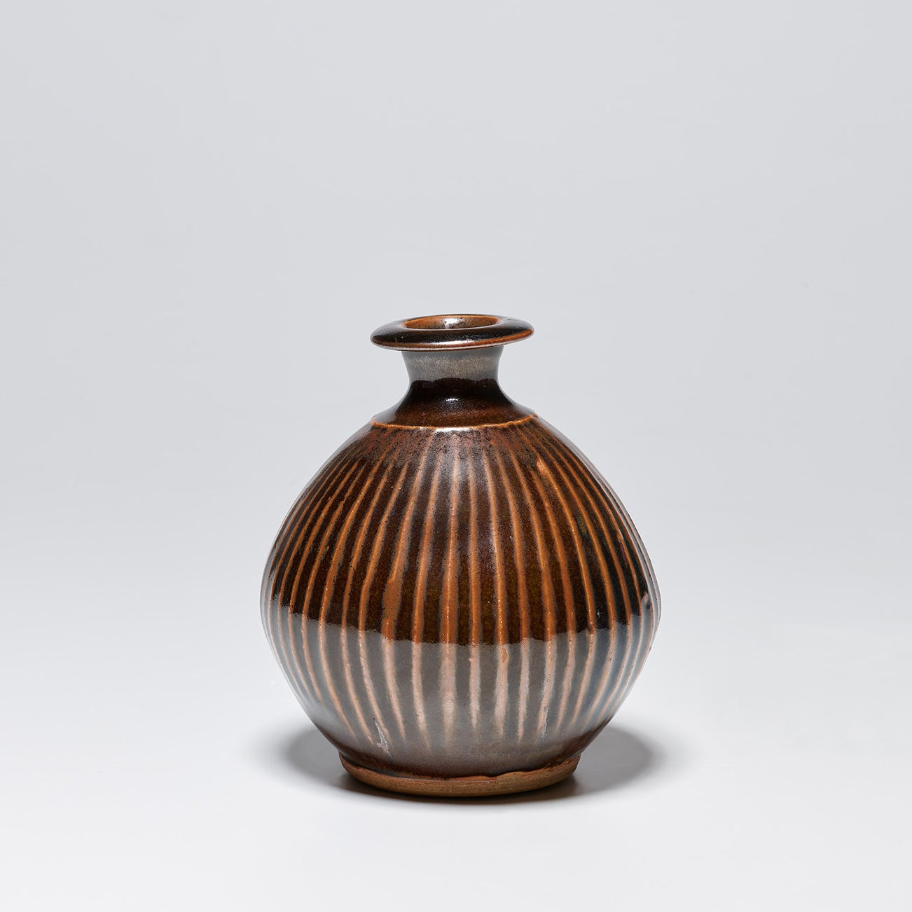 fluted stoneware body with tenmoku glaze