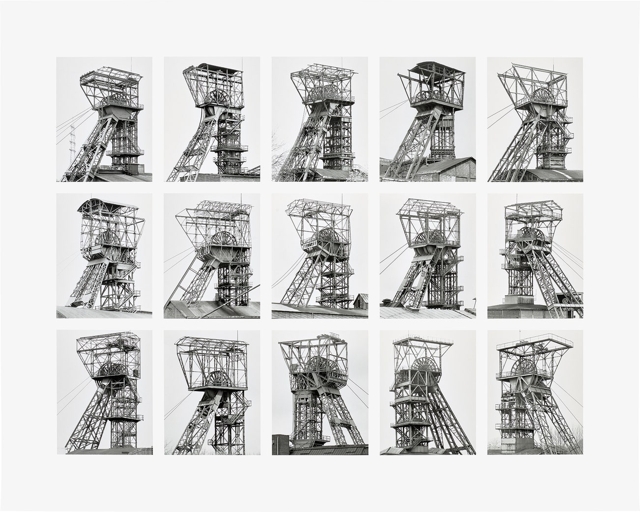 GermanHusband and wife Bernd and Hilla Becher began photographing buildings and relics of the Industrial Revolution, such as coal mines and cooling towers, in 1959. Like objective scientists removing a specimen from the field, the Bechers framed their subject in a manner that isolated it from its environment. Often, these stark, beautifully detailed prints were then displayed in grid-like structures, forming stunning 'Typologies'.