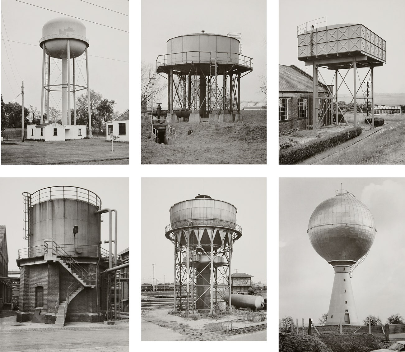 GermanHusband and wife Bernd and Hilla Becher began photographing buildings and relics of the Industrial Revolution, such as coal mines and cooling towers, in 1959. Like objective scientists removing a specimen from the field, the Bechers framed their subject in a manner that isolated it from its environment. Often, these stark, beautifully detailed prints were then displayed in grid-like structures, forming stunning 'Typologies'.
