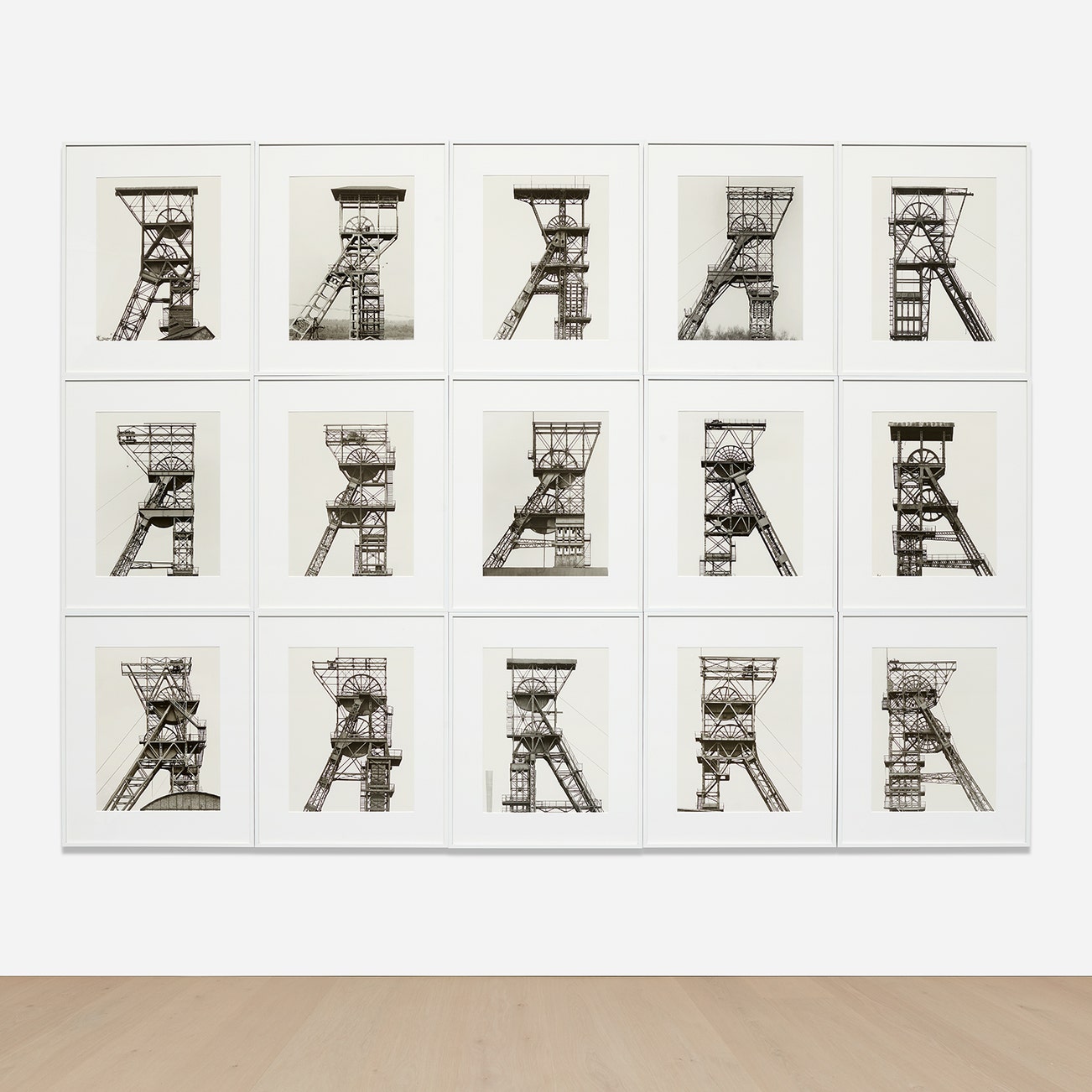 GermanHusband and wife Bernd and Hilla Becher began photographing buildings and relics of the Industrial Revolution, such as coal mines and cooling towers, in 1959. Like objective scientists removing a specimen from the field, the Bechers framed their subject in a manner that isolated it from its environment. Often, these stark, beautifully detailed prints were then displayed in grid-like structures, forming stunning 'Typologies'.