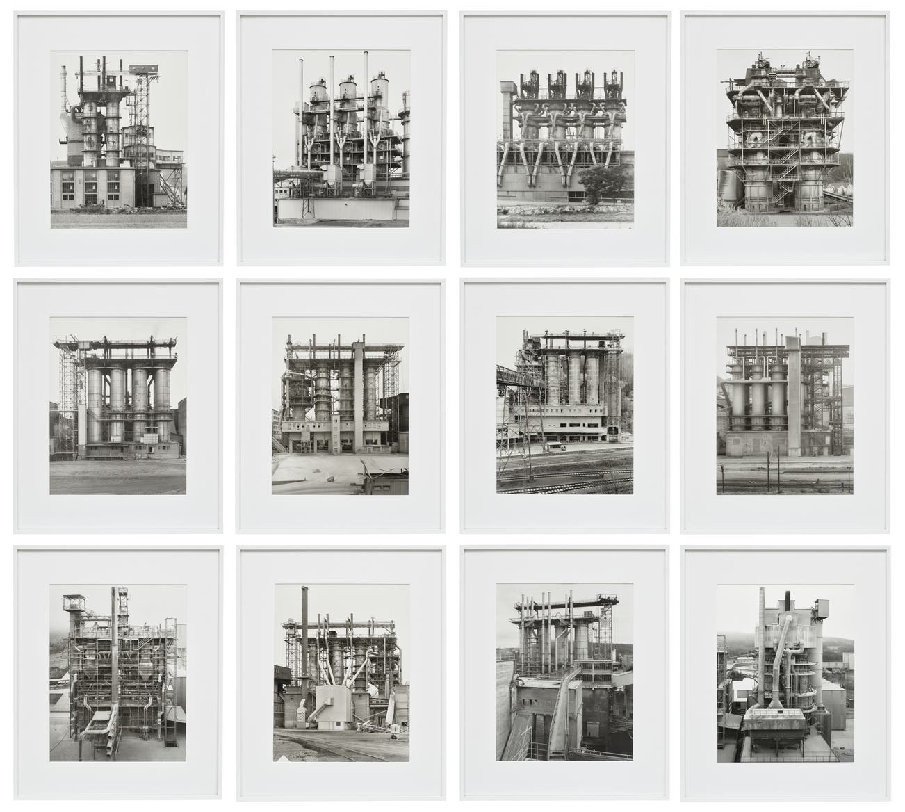 GermanHusband and wife Bernd and Hilla Becher began photographing buildings and relics of the Industrial Revolution, such as coal mines and cooling towers, in 1959. Like objective scientists removing a specimen from the field, the Bechers framed their subject in a manner that isolated it from its environment. Often, these stark, beautifully detailed prints were then displayed in grid-like structures, forming stunning 'Typologies'.