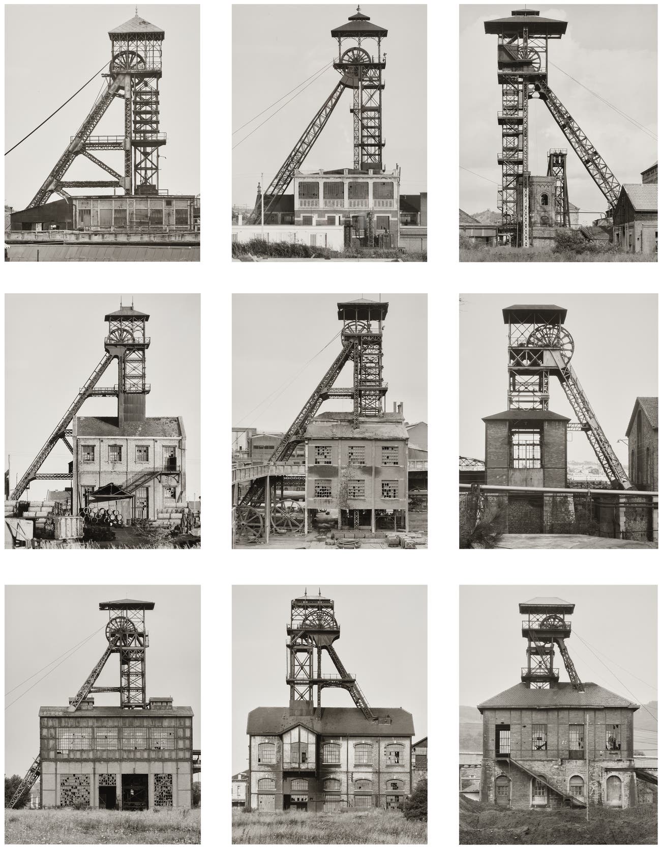 GermanHusband and wife Bernd and Hilla Becher began photographing buildings and relics of the Industrial Revolution, such as coal mines and cooling towers, in 1959. Like objective scientists removing a specimen from the field, the Bechers framed their subject in a manner that isolated it from its environment. Often, these stark, beautifully detailed prints were then displayed in grid-like structures, forming stunning 'Typologies'.