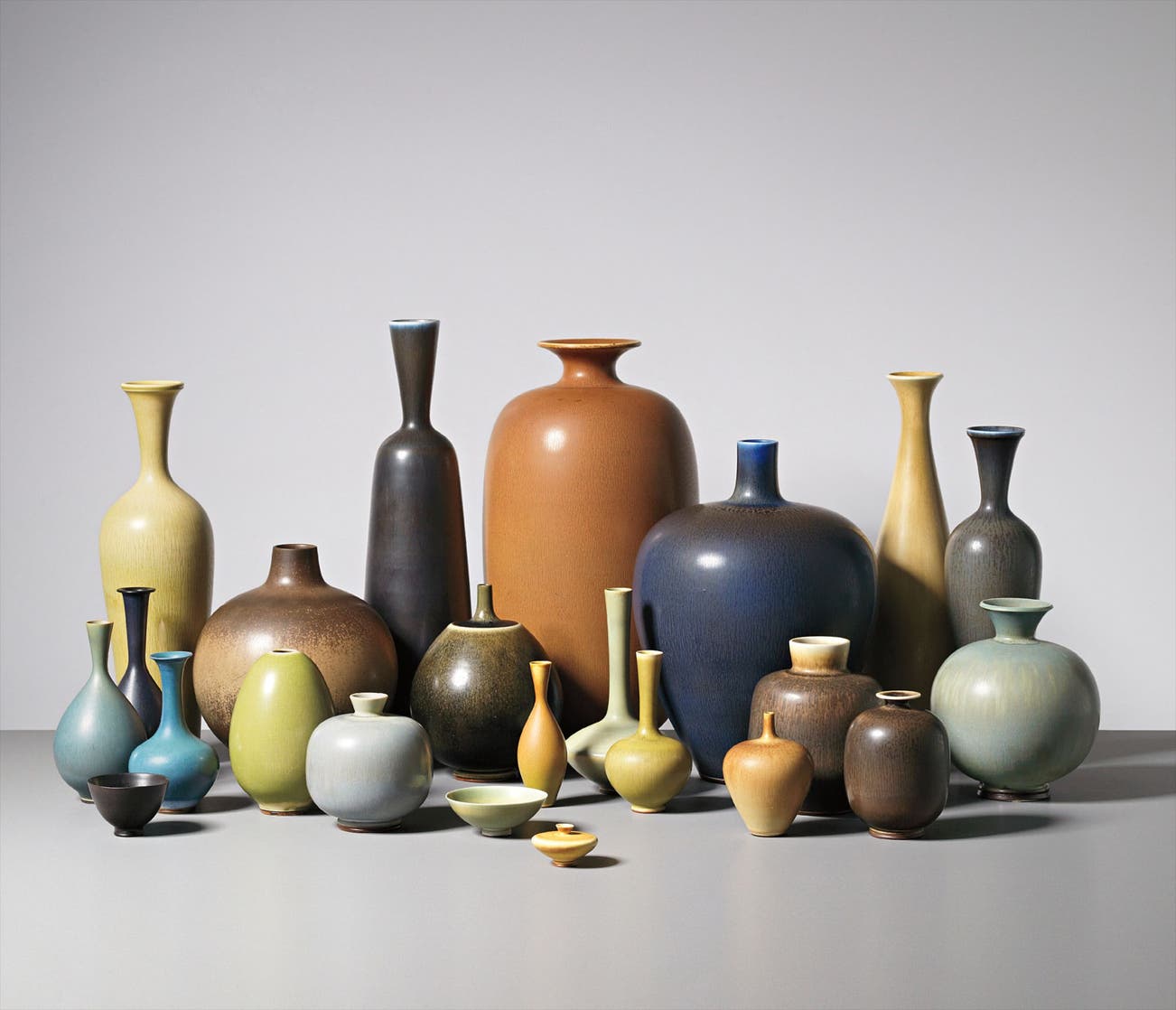 Produced at Gustavsberg, Sweden. Undersides' incised, impressed with manufacturer's marks and artist's signature.